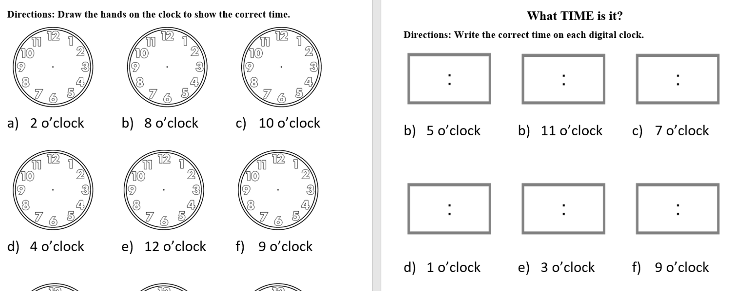 The learner will practice telling time to the hour using this 8-page activity packet by