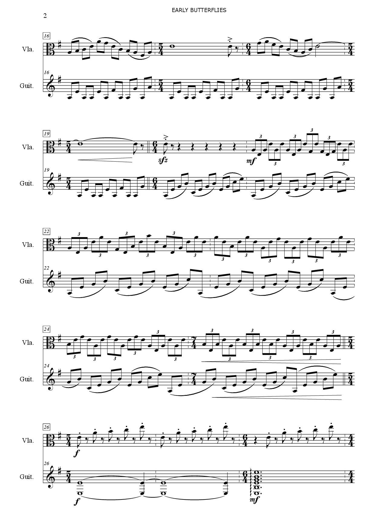 Peter Machajdík: EARLY BUTTERFLIES for viola and guitar (Digital Sheet Music) [score and parts]