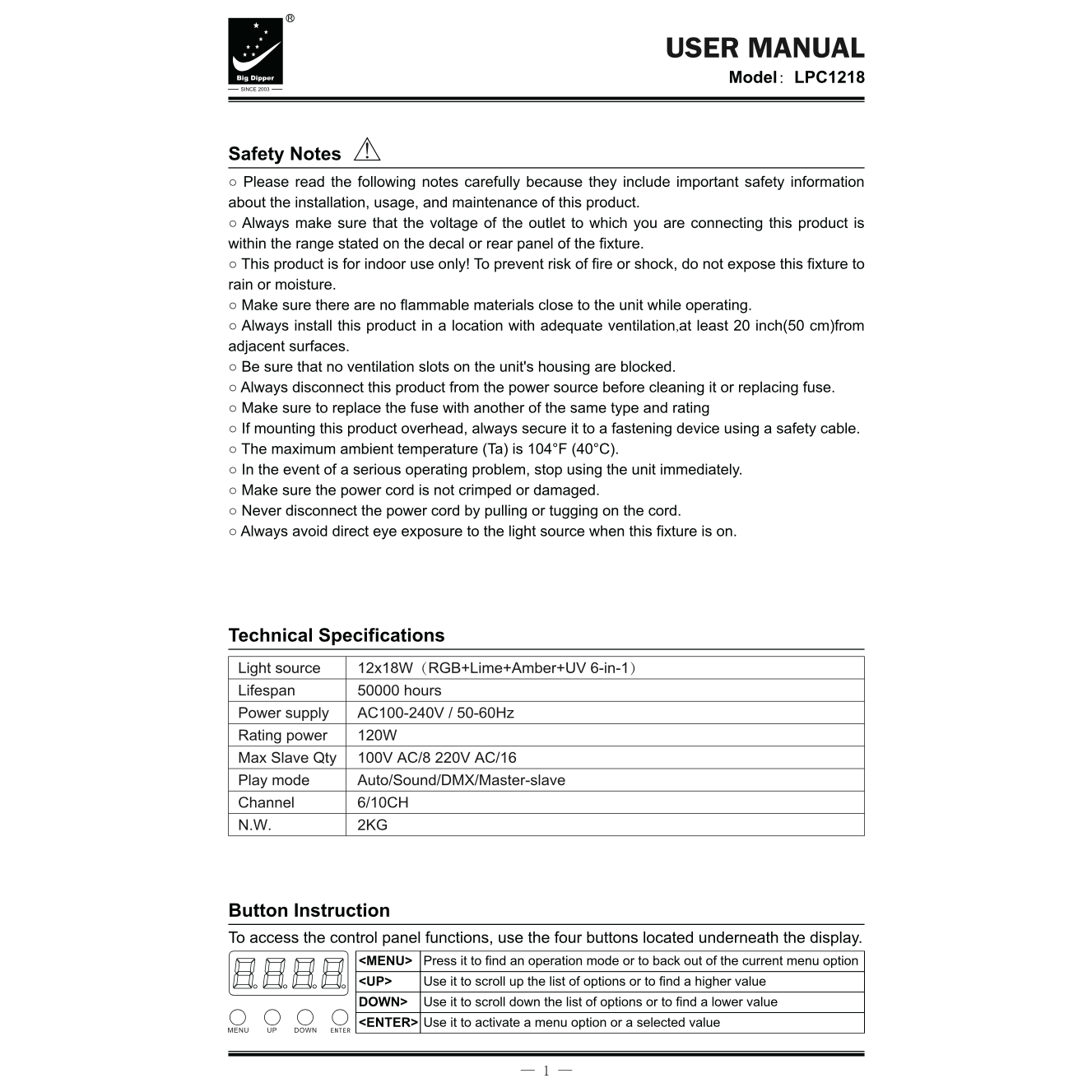 Librería de Magic 3d Easy View para el Par Led "LPC1218" Lima de Big Dipper ( 6-10CH ).