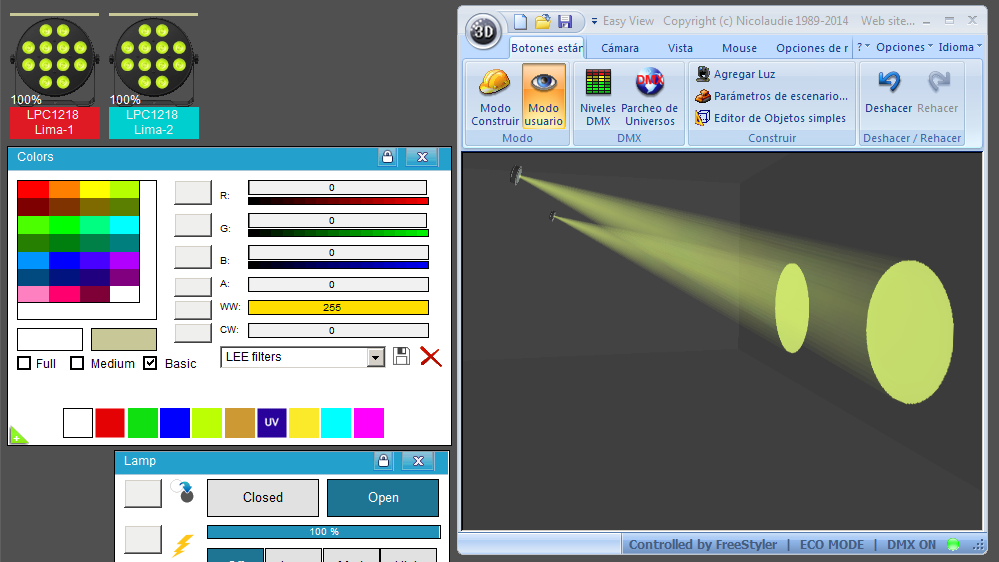 Esta Librería SSL2 está optimizada para trabajar con Magic 3d Easy View. Es decir para ver una representación 3D de las secuencias que estemos realizando con Freestyler, QLC+ o cualquier otro soft que se conecte con Magic 3d.