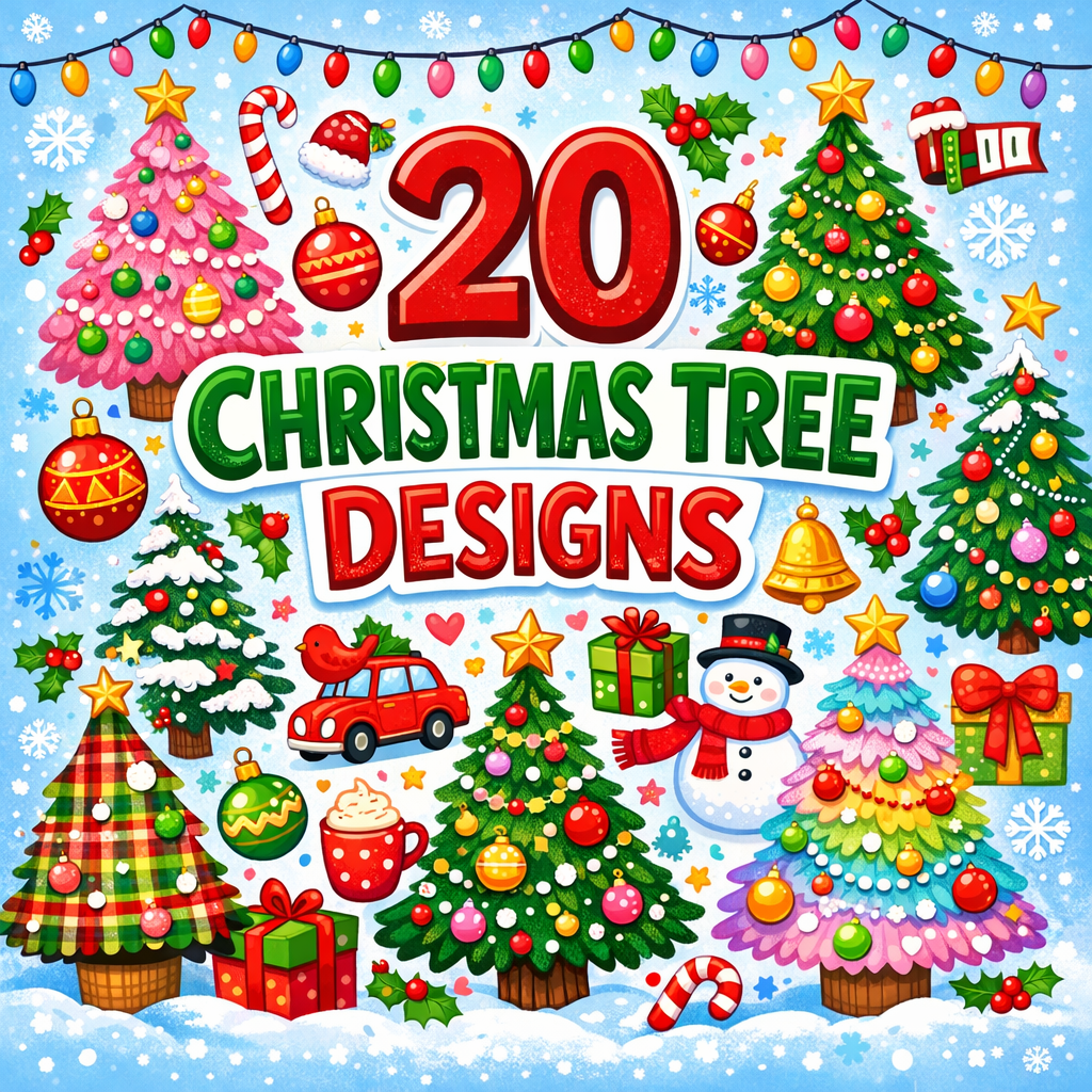 This beautifully designed bundle includes 20 unique Christmas tree illustrations, perfect for printing, decorating, crafting, scrapbooking, classroom activities, card-making, and more.