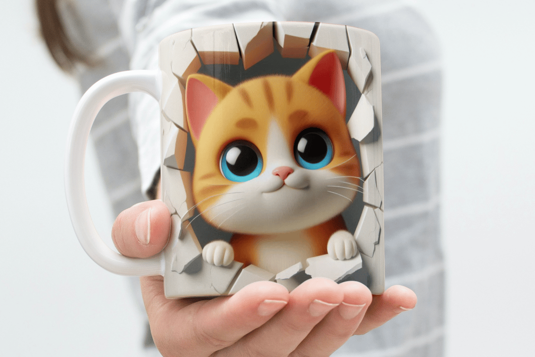 Add a touch of feline fun to your mug designs with this charming 3D cat cartoon. Perfect for creating unique, lovable mugs that will delight everyone!