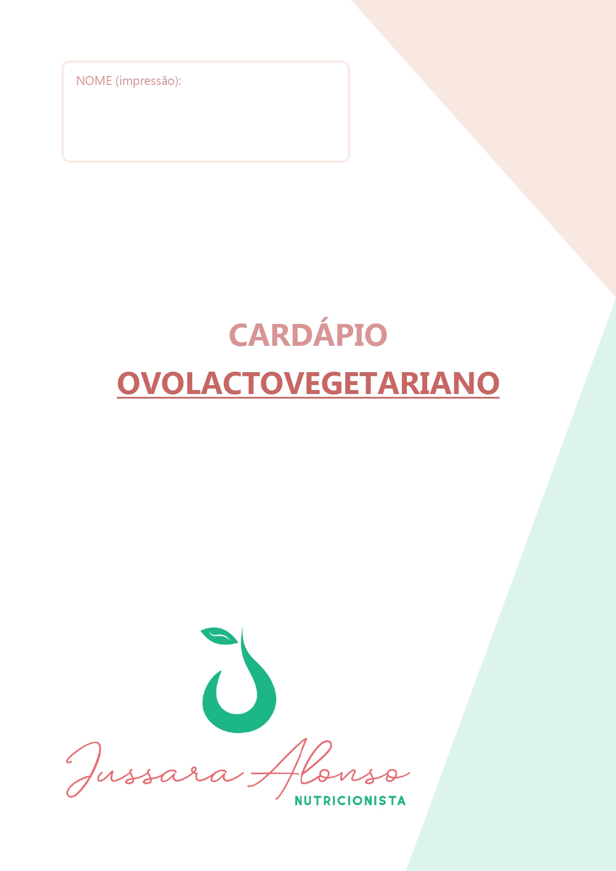 CARDÁPIO NUTRICIONAL - OVOLACTOVEGETARIANISMO