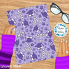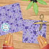 Grad caps, diplomas, tassels and stars in purple.
