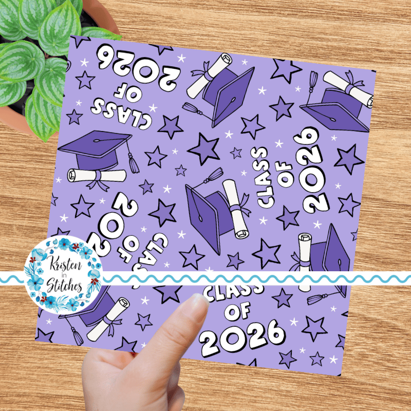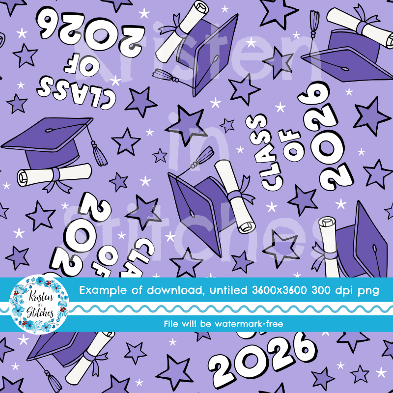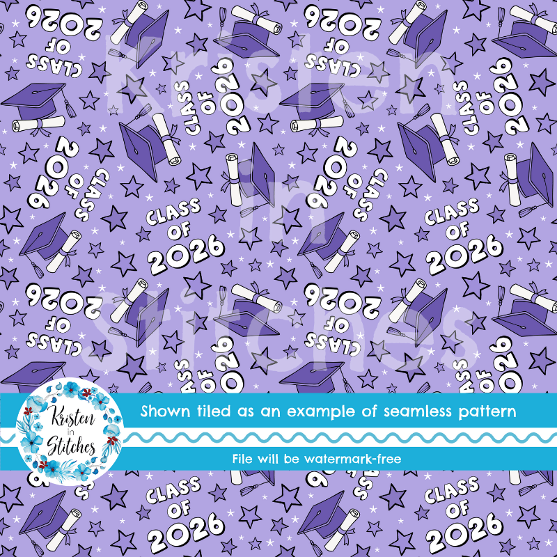 Class of 2026 Graduation Grad Caps and Tassels Seamless Pattern Purple
