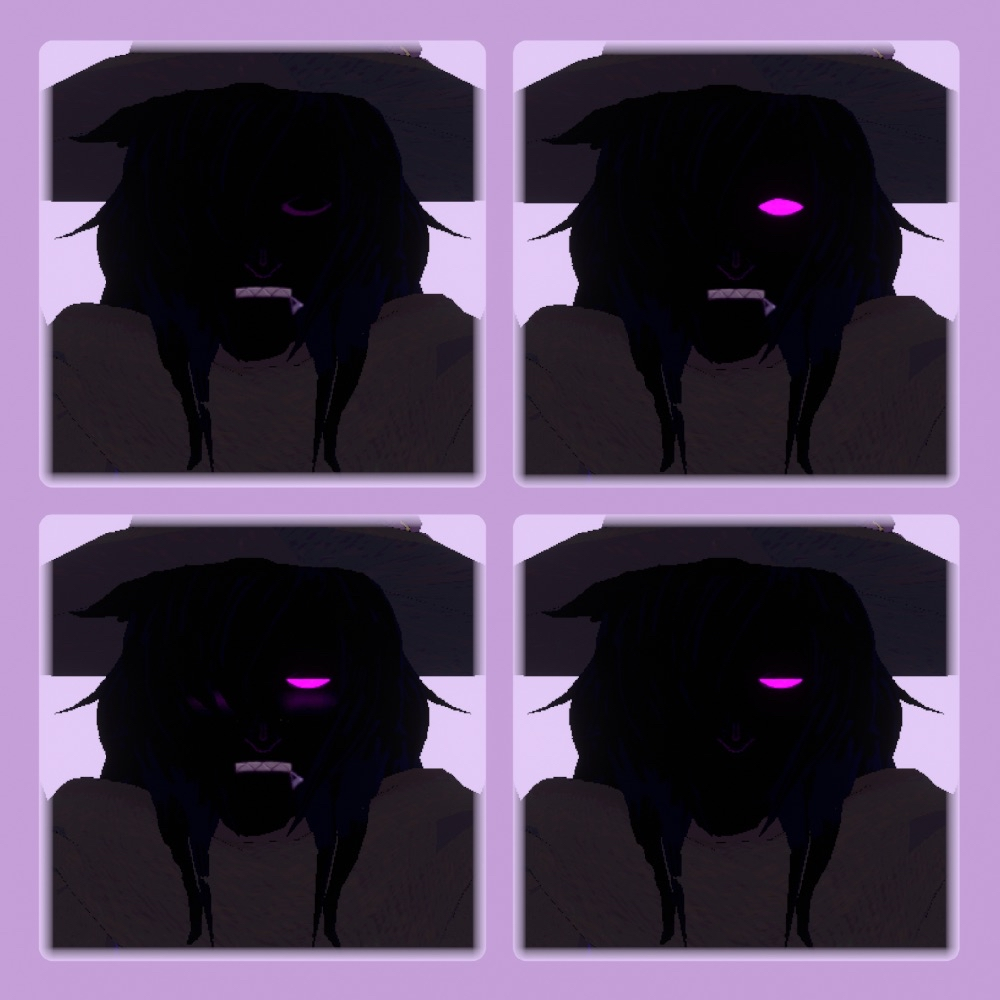 - Several different expressions, (Closed eyes, narrow eyes, wide eyes, blush)