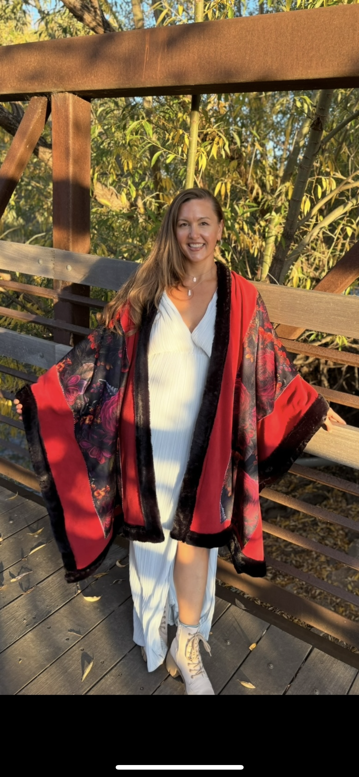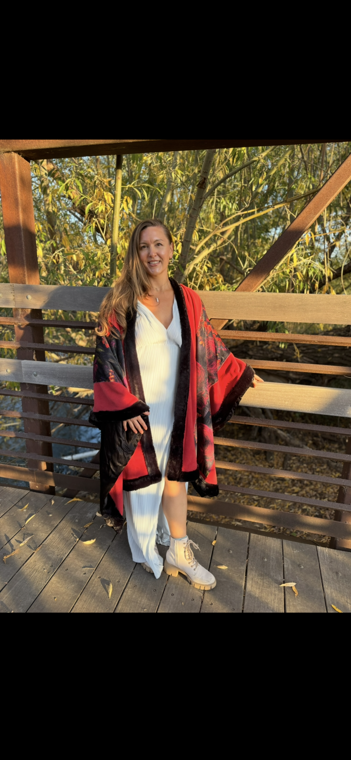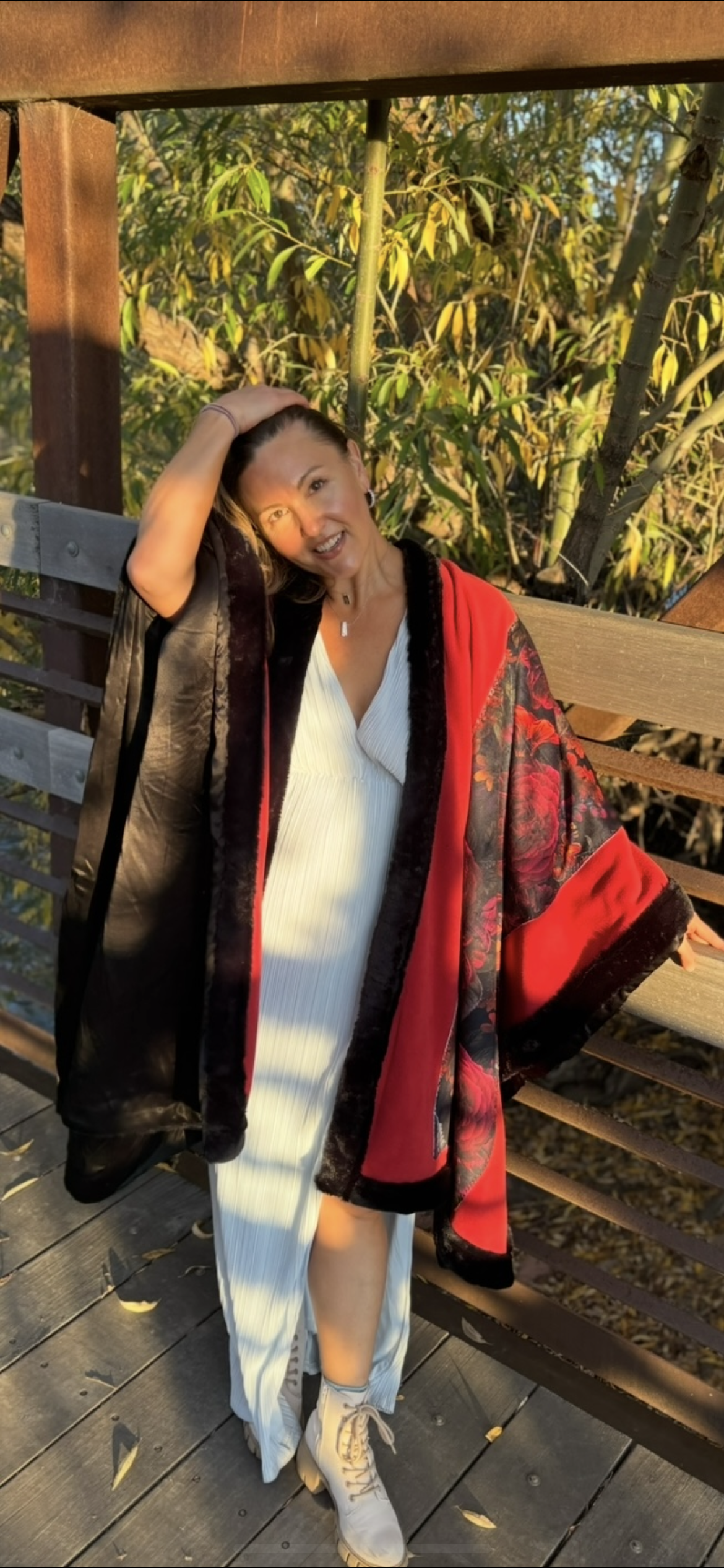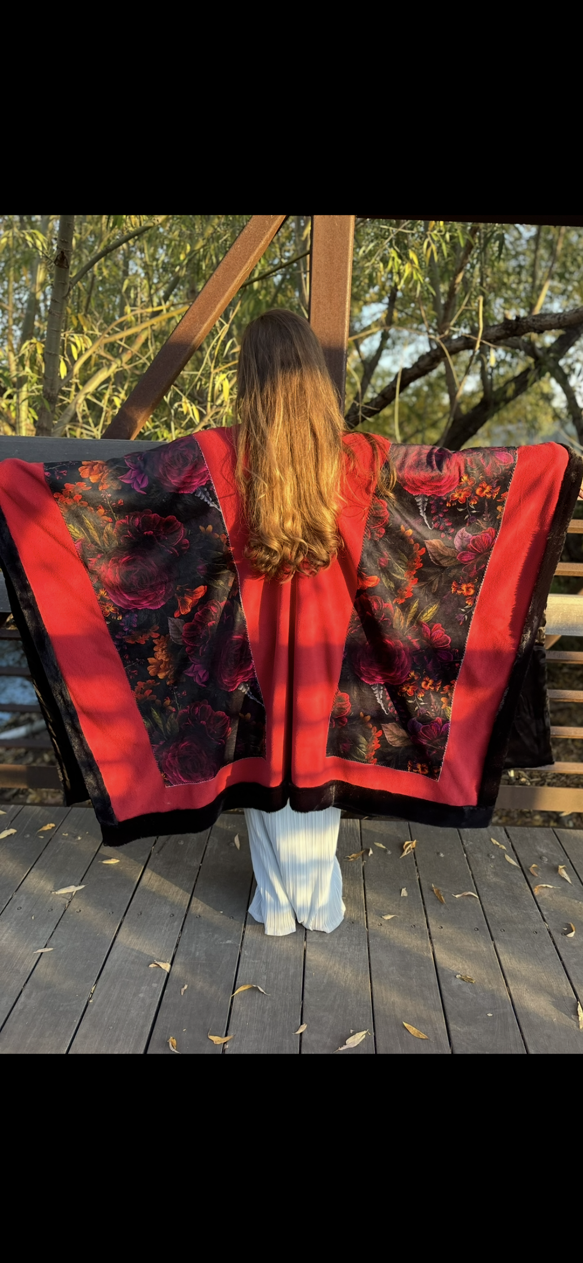 Soft, warm and beautiful open Poncho, fully lined. Made with Fleece, Minky velvet, Sustainable Satin and Faux Fur.
