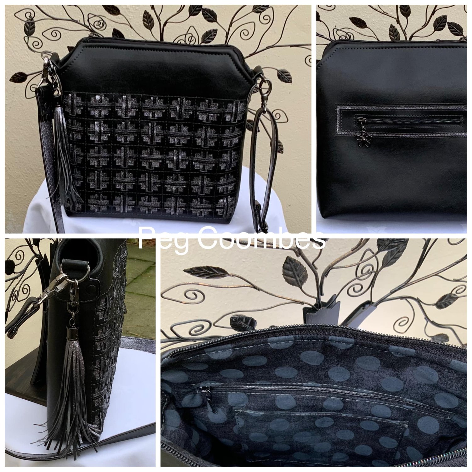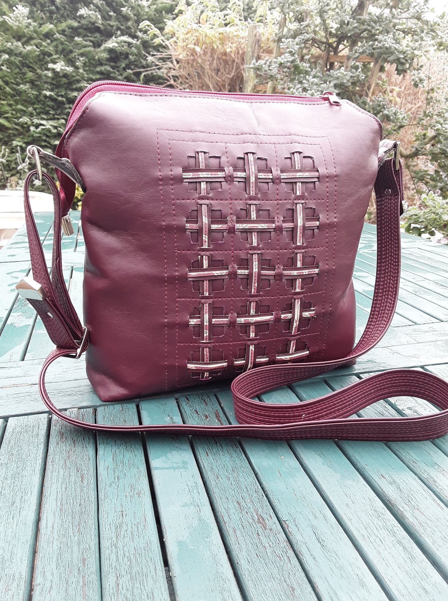 THIS IS NOT A FINISHED PRODUCT - THIS IS A PDF SEWING PATTERN. The Halo Sling Bag is a uniquely styled sewing pattern designed for novice sewers. If you have wondered about sewing a handbag then wonder no more. Using the Halo pattern you can create a beautifully styled structured handbag to be proud of even if you have NEVER made a handbag before! The Halo is a deceptively simple bag to sew, with a clean simple silhouette this bag lends itself to bold fabrics or decoration of any kind. Halo has a zipper closure for security and internally she has a large zippered pocket and a double slip pocket as well as a perfectly fitted lining. Halo Has been designed to sew in quilting weight cotton but can also be sewn in faux leather. cork leather or real leather according to yours and you machines capabilities. This pattern has been designed to sew using domestic machines with layers kept to the bare minimum at all times. The pattern contains 31 full colour pages of instructions, photos and diagrams to guide you through the process, with helpful hints and tips throughout. Full sized pattern pieces to be printed on your domestic home printer and a comprehensive cutting table for those who prefer to cut from measurements. Also included is a comprehensive video tutorial so you have your own sewing teacher in your sewing space with you as you sew. The Halo First Steps pattern is the first in a series of patterns aimed at absolute beginners, the patterns are tested by a team of new bag makers and novices to ensure that they are indeed achievable. Each First Steps pattern will also have a Step Up Supplement to accommodate the more advanced sewer. The Halo Step Up Supplement is designed to work alongside the First Steps pattern to raise the bar for the more experienced or adventurous sewer. The Step Up version of Halo should be sewn in either faux leather or cork (or real leather). The Step Up supplement includes the unique cutwork and weave design on the front of the sample bags, a fabulous triple overlay faux leather/cork leather exterior zipper pocket and alternative strap connectors. Use the weaving design in full or in part to give your Halo bag the designer edge. full printable templates for the additional features and for the cut work and weave design. You will find three pattern files to be downloaded, Two contains the patterns and the other is the video list. Finished size is 10'' w x 10'' h x 2 3/4'' d I am unable to offer refunds on digital patterns .