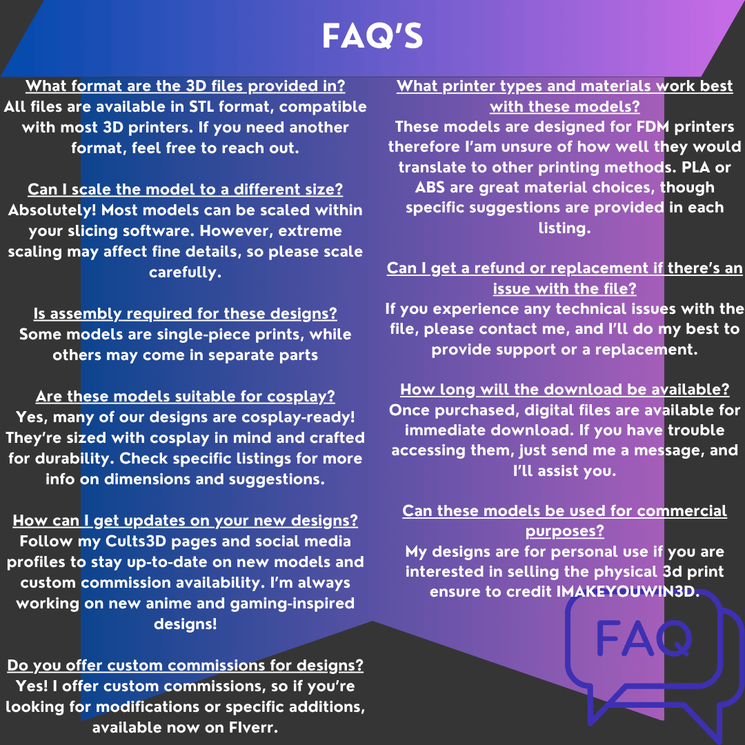 - High-Quality for Cosplay: A durable, print-friendly model made to withstand conventions, photoshoots, or as a standout display item.