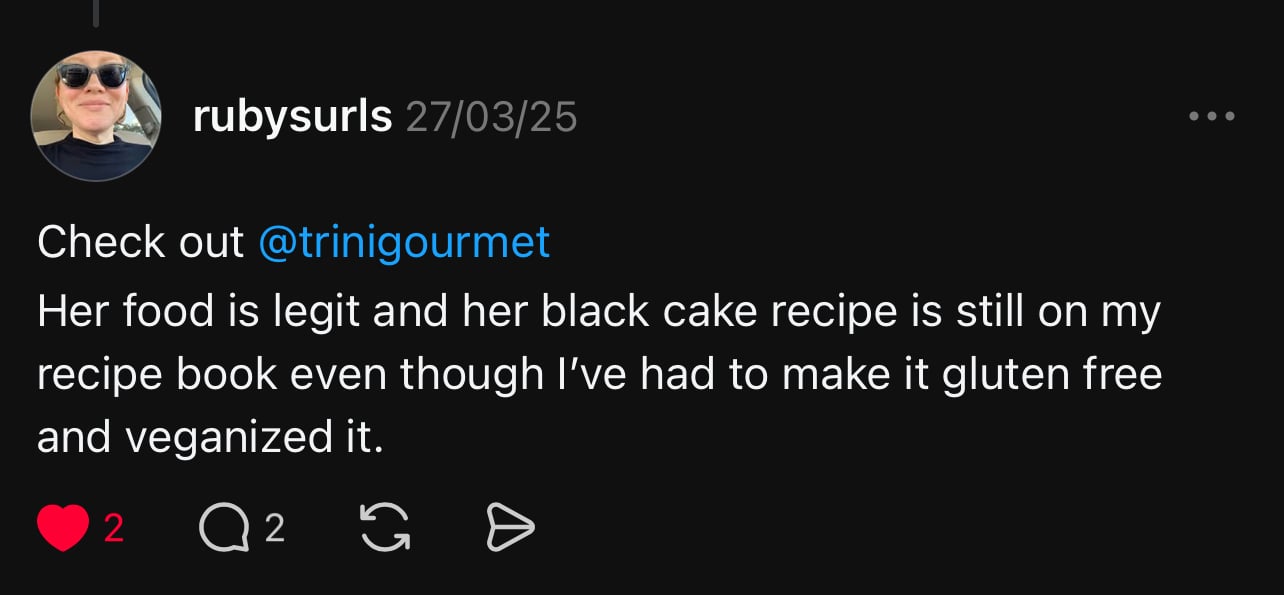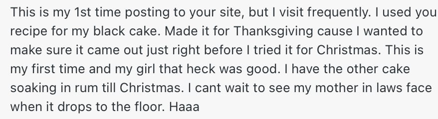 “I finally made Black Cake without feeling overwhelmed — the recipe was flawless.” – Denise, Port of Spain