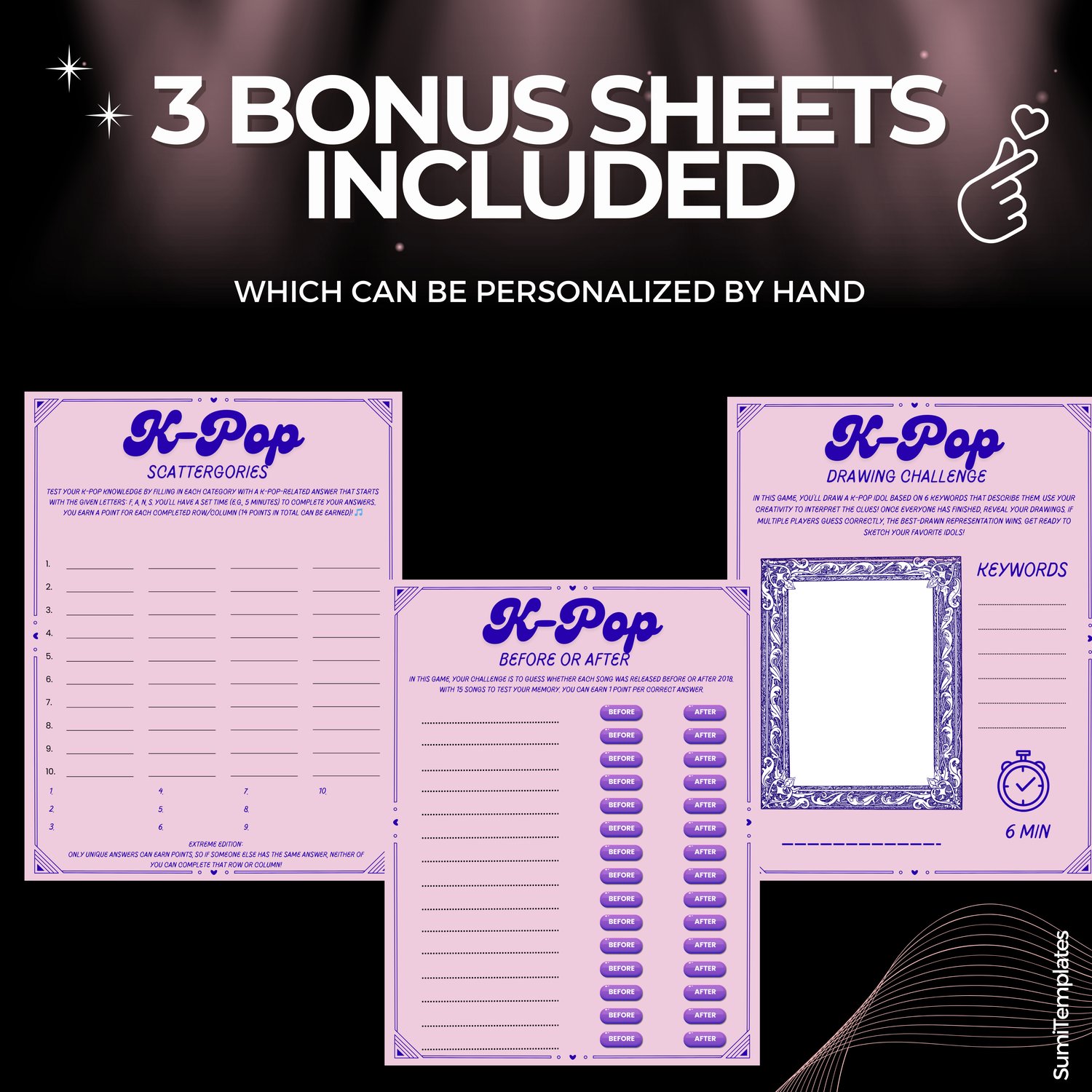 * 3 DIY Sheets β Customize your game with your own K-pop prompts!