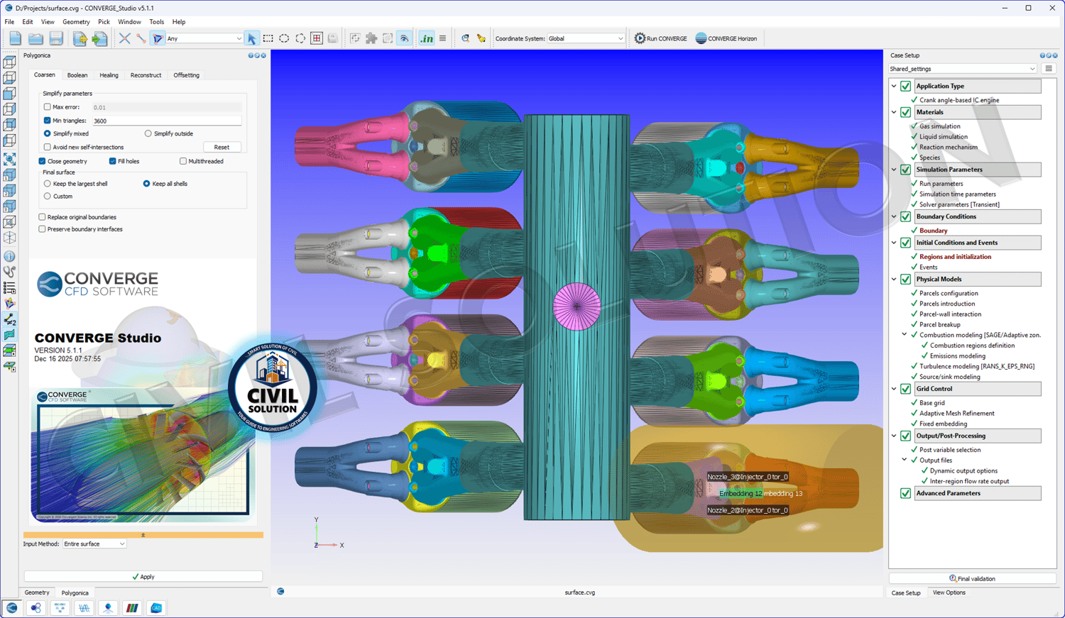 🛫 Convergent Science CONVERGE Studio v5.1.1 is a powerful CFD pre- and post-processing environment designed specifically for CONVERGE CFD. It enables engineers and researchers to set up simulations, visualize results, and analyze complex fluid dynamics with accuracy and speed—widely used in combustion, aerospace, automotive, and energy applications.