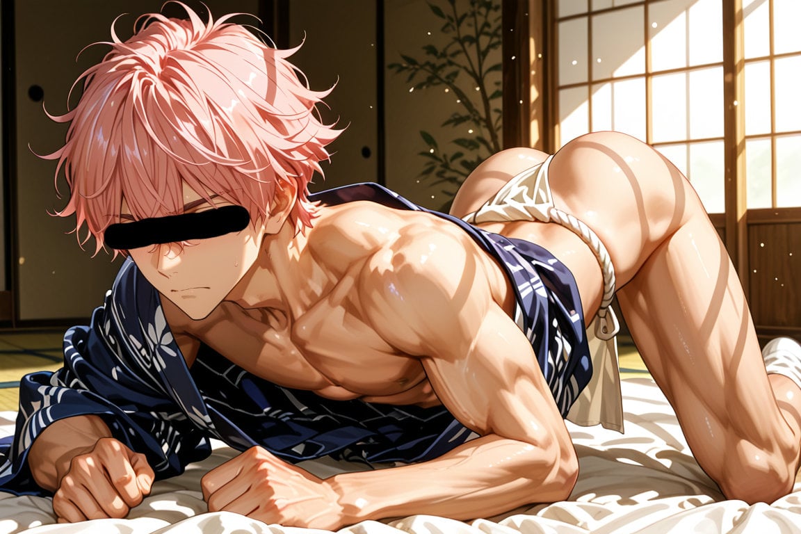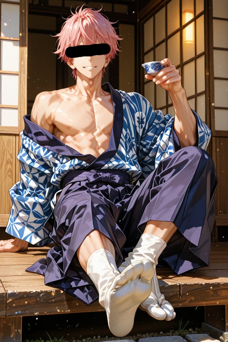 日本の正月をテーマに、着物を着用している男性を、キャラクターごとにお任せ作成しました。男らしいキャラクターの魅力を思い切って表現しました。