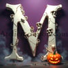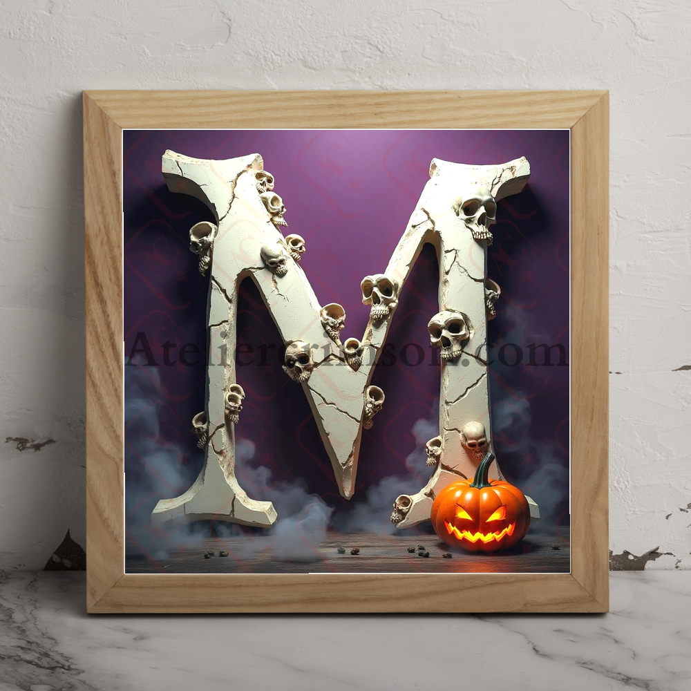 The letter M spooky character skull Halloween Discover our Spooky Skull Alphabet! Each character is a 3D masterpiece of bone and shadow. Perfect for Halloween designs, gothic projects, or unique wall art. 💀✨ Click to download this high-resolution character and elevate your creations with haunting elegance!