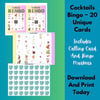 Printable Cocktails Bingo Game | Girls Night Out Cocktails Bingo Game | Bachelorette Party Cocktails Bingo Game