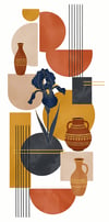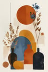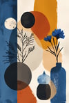 Bring timeless elegance to your creative projects with this mid-century modern Boho-inspired abstract art bundle. Featuring a harmonious blend of geometric shapes, minimalist vases, and delicate florals, this collection offers a warm palette of terracotta, ochre, beige, and charcoal tones. Perfect for wall art, prints, invitations, branding, and digital design, each piece combines the charm of abstract geometric illustration with the clean aesthetic of modern minimalism. Featuring Iris, Cornflowers, Delphinium and Saffron flowers in Boho inspired vases.