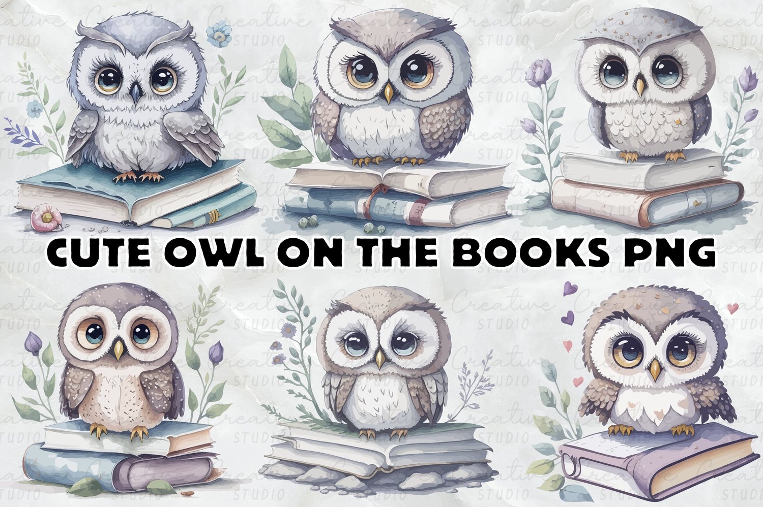 Cute Owl on Books Design Sticker Clipart Sublimation