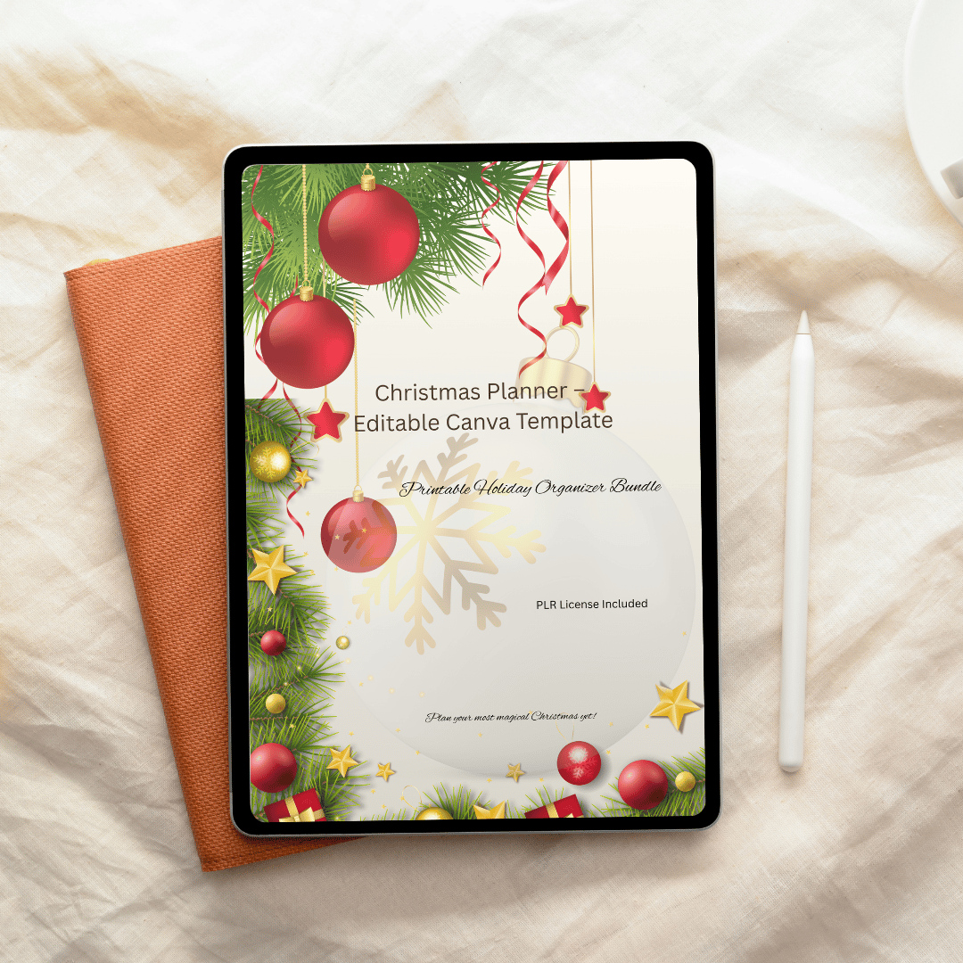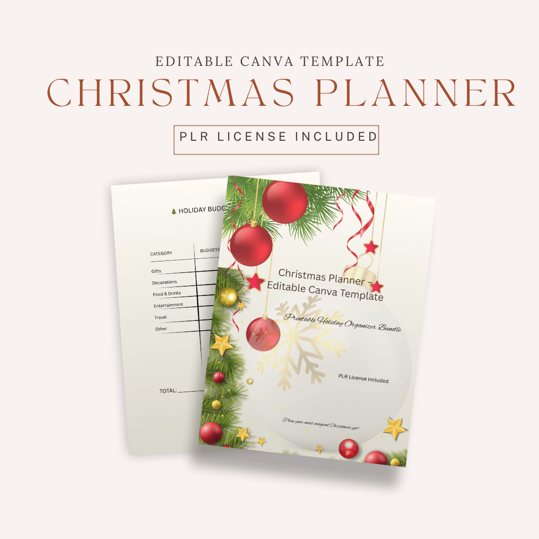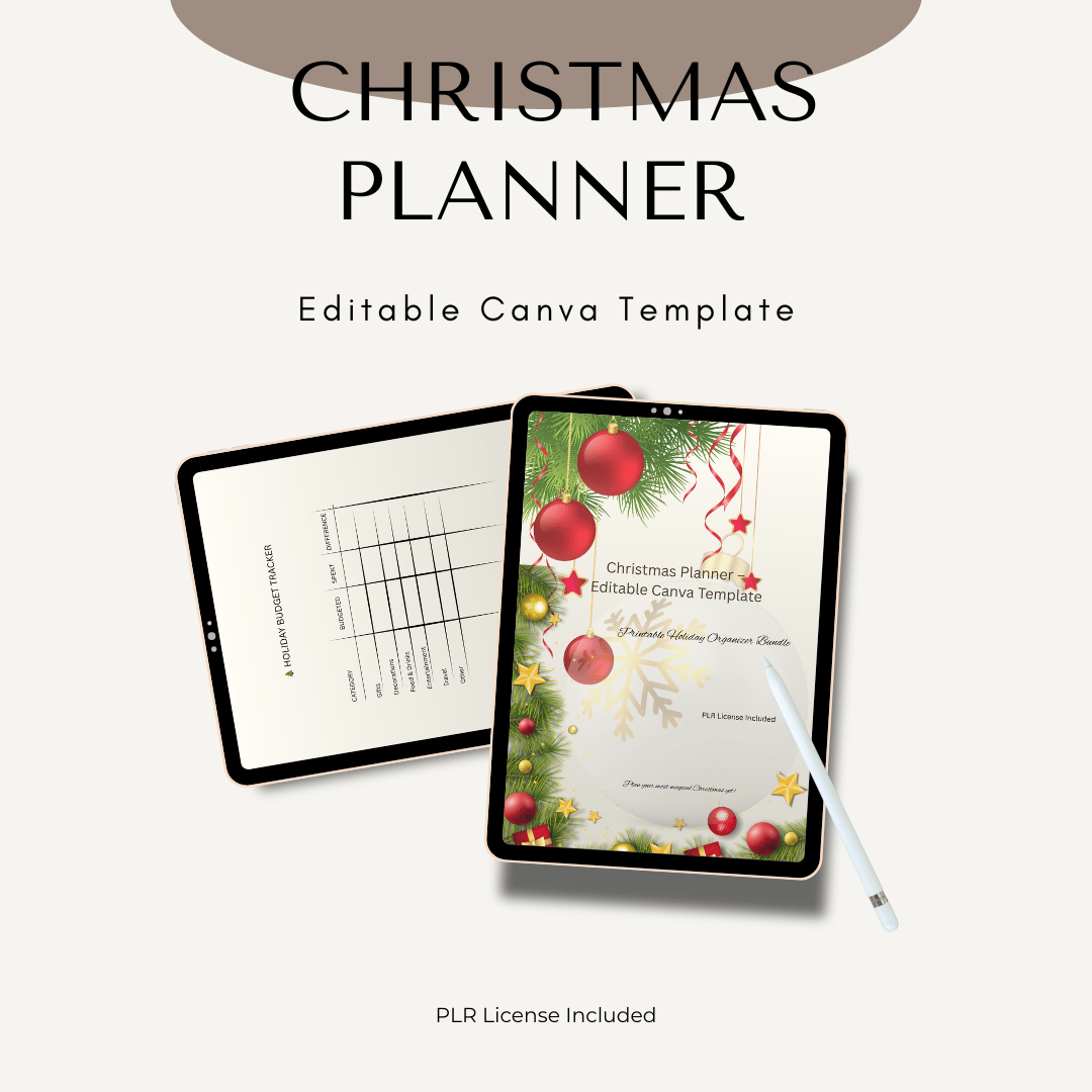 christmas planner, holiday plr, editable template, canva planner, plr license, printable planner, gift tracker, budget planner, holiday organizer, digital product