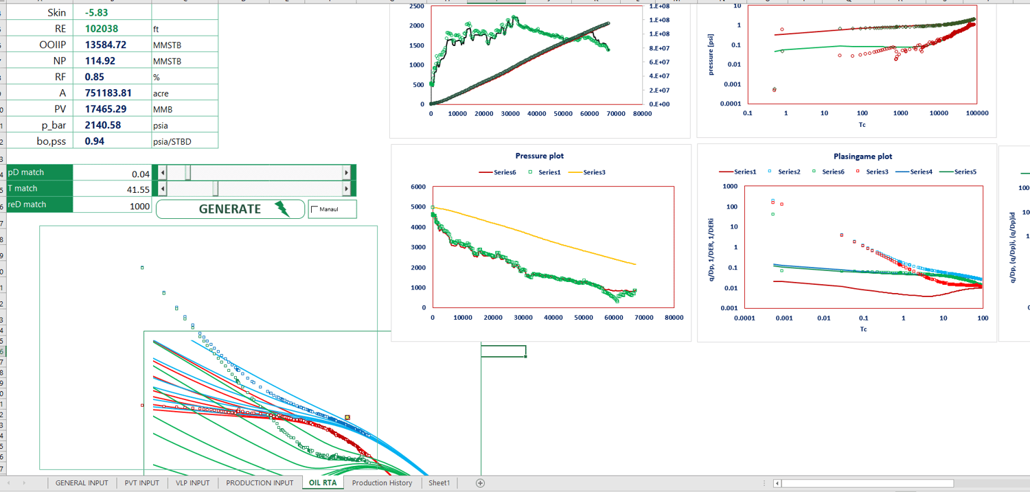 This Excel-based tool is developed for Rate Transient Analysis (RTA) using the Type Curve Matching technique grounded in the Blasingame method.