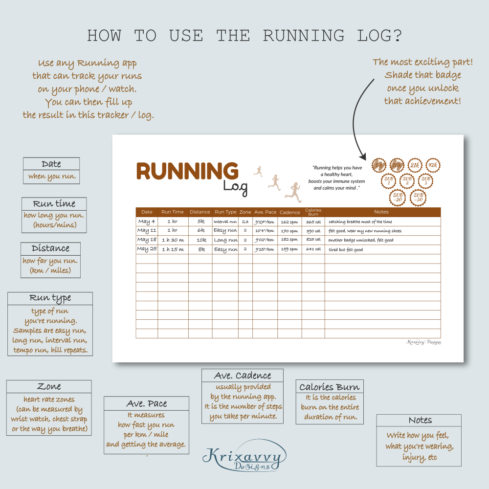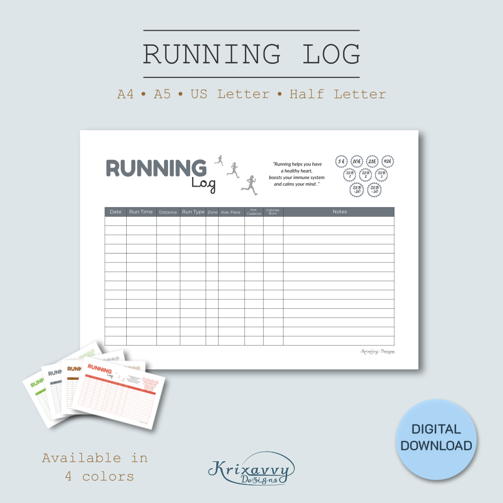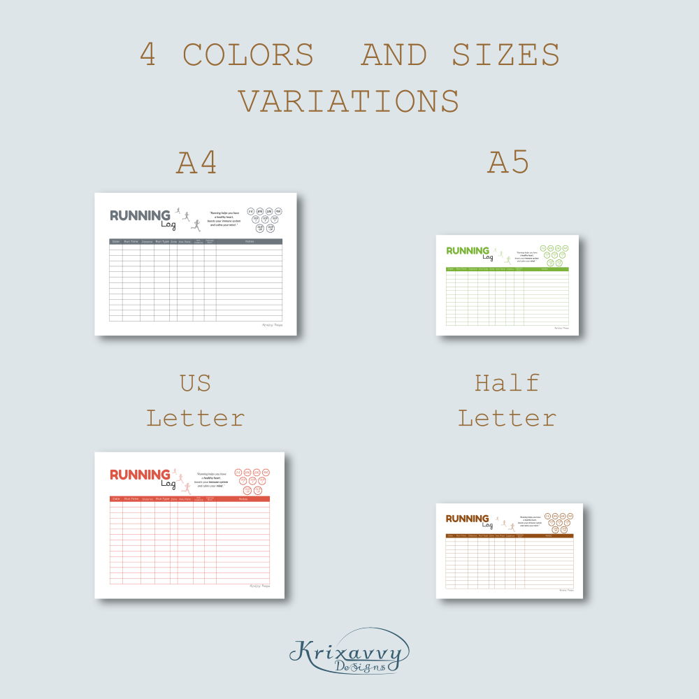 Running Log in A4, A5, US Letter, Half Letter