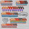 36 complete girls. There are 6 different dolls and each doll has blonde, brunette, red and black hair and blue, brown or green eyes.
