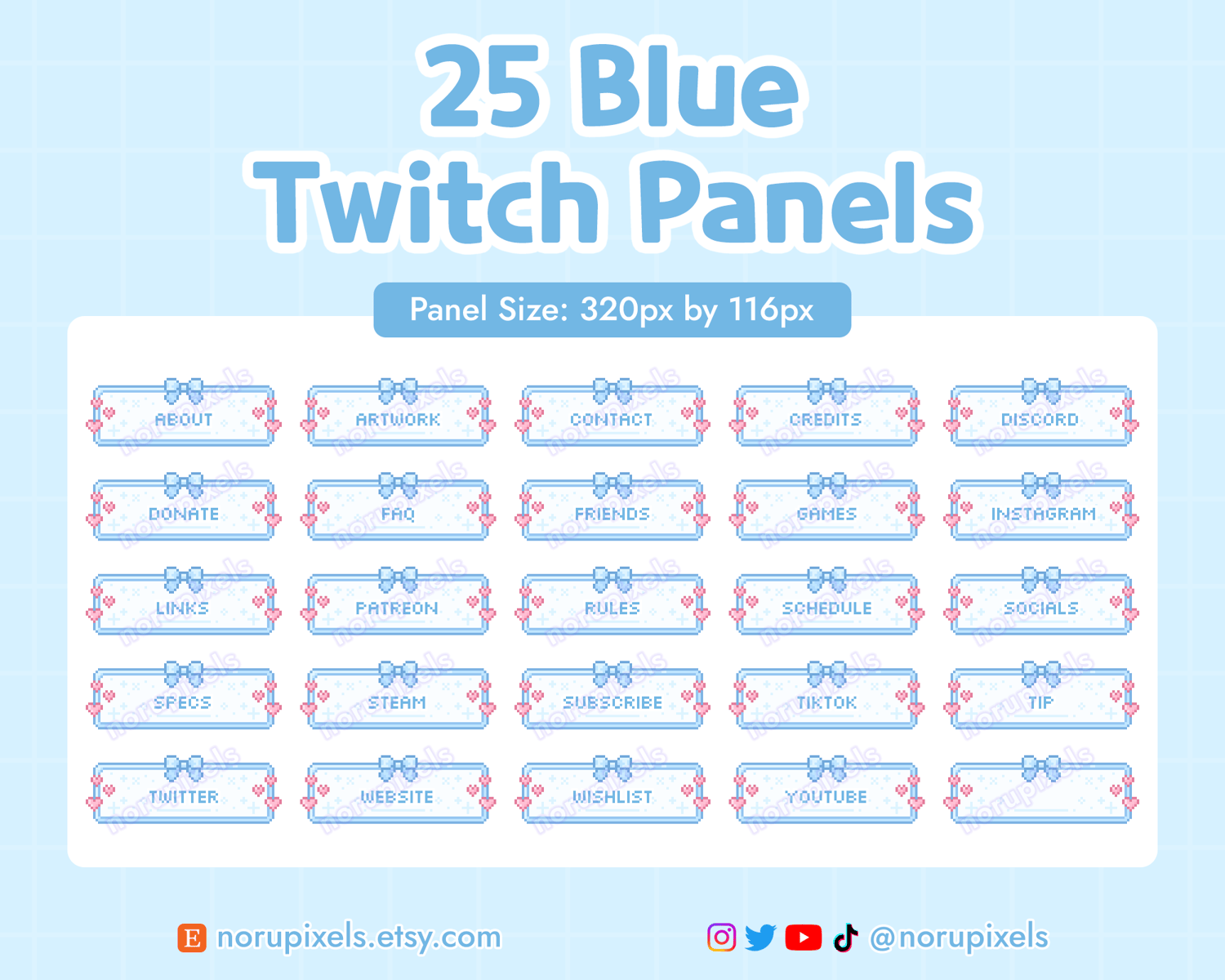 - 25 Twitch panels (each panel size: 320 x 116px)