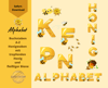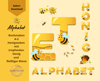 Buchstaben Cliparts Alphabet digital. Honig mit Bienen - Sofortiger Download. PNGs mit Honigbienen