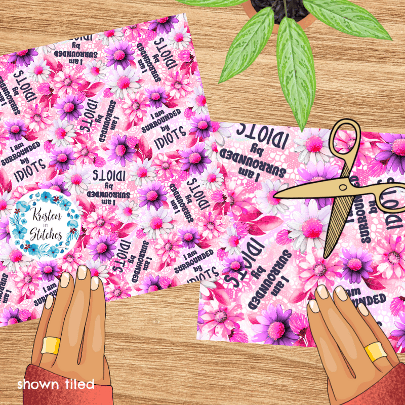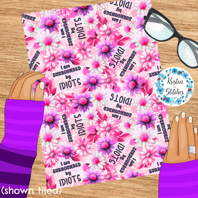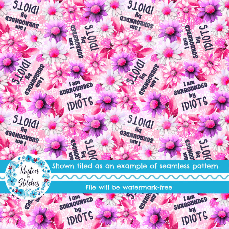 I Am Surrounded by Idiots Sarcastic Floral Seamless Pattern, Pink