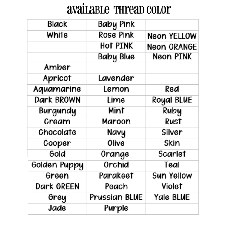✨️ NOTE: Please see font style, thread color chart in pictures and add in the personalization section. More font style in my font section.