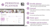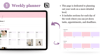 - Goals page, Monthly planner, Journal, Wishlist, Weekly plans, Study, Favourite things.