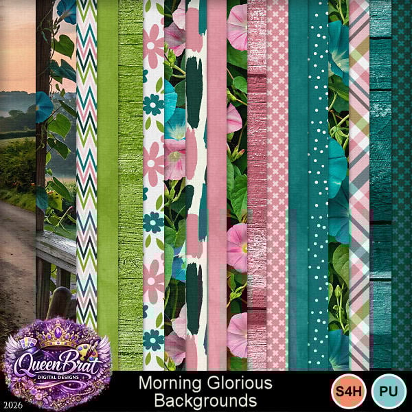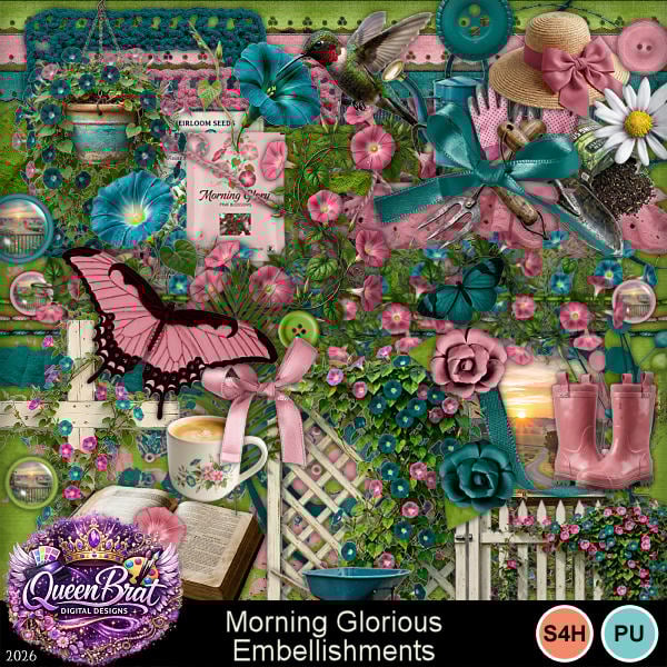 A country spring garden theme kit with morning glories. Morning glories are associated with love, affection, and spiritual enlightenment. So the theme extends to includes some spiritual elements