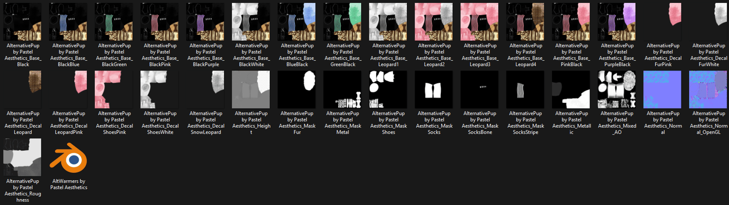 33 Textures (14 Base Colours, Decals, Height, Metallic, MixedAO, Normals, Roughness, Masks)