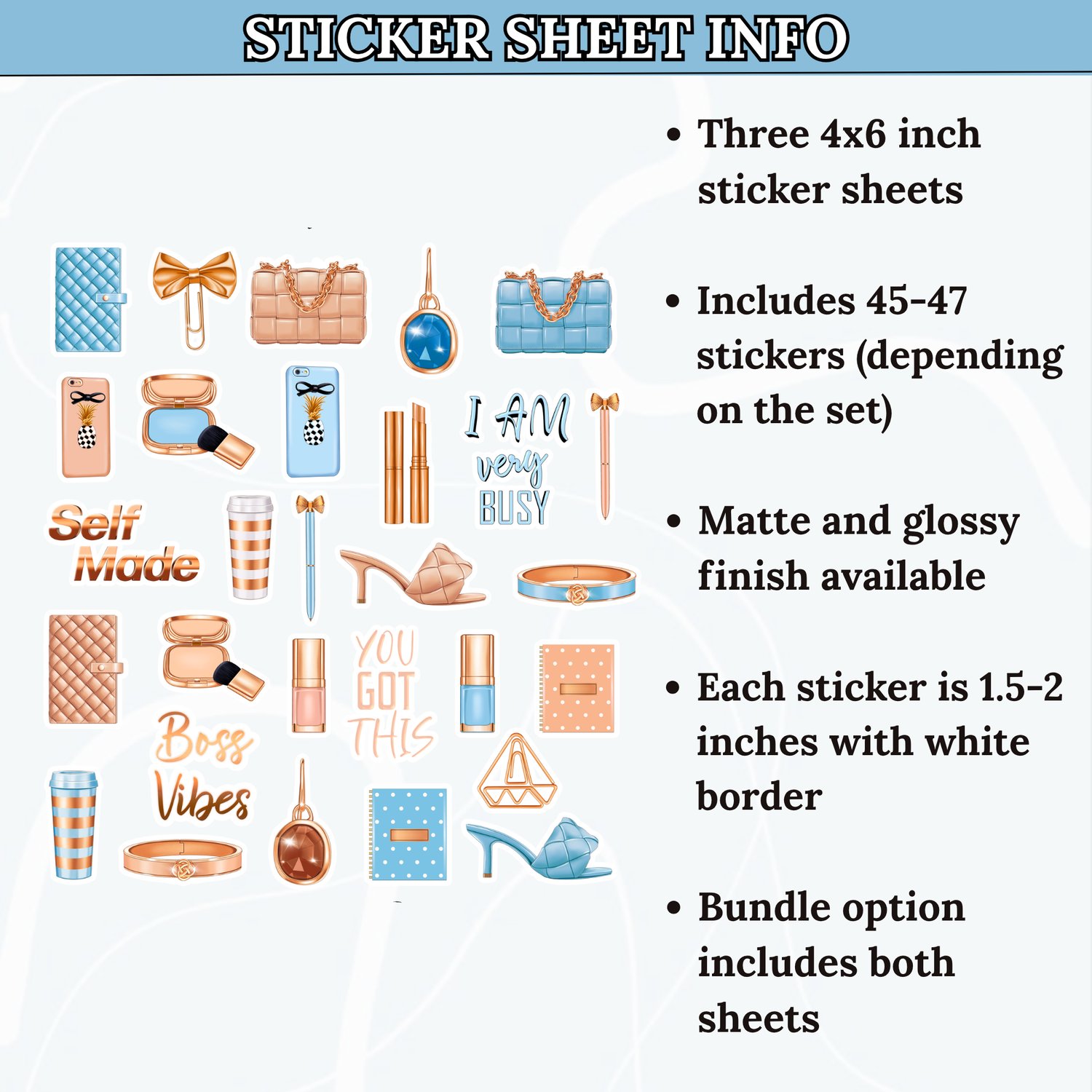 β’ 45-47 individual stickers (3 sticker sheets)