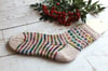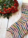 September, the start of Autumn and a time of abundant berries. Autumn also means cooler evenings and cosy socks are a must. Worked in DK weight yarn using mostly knit and slipped stitches these socks knit up wonderfully quickly.