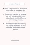- Please be aware that colors may vary slightly depending on your computer monitor and printer settings.