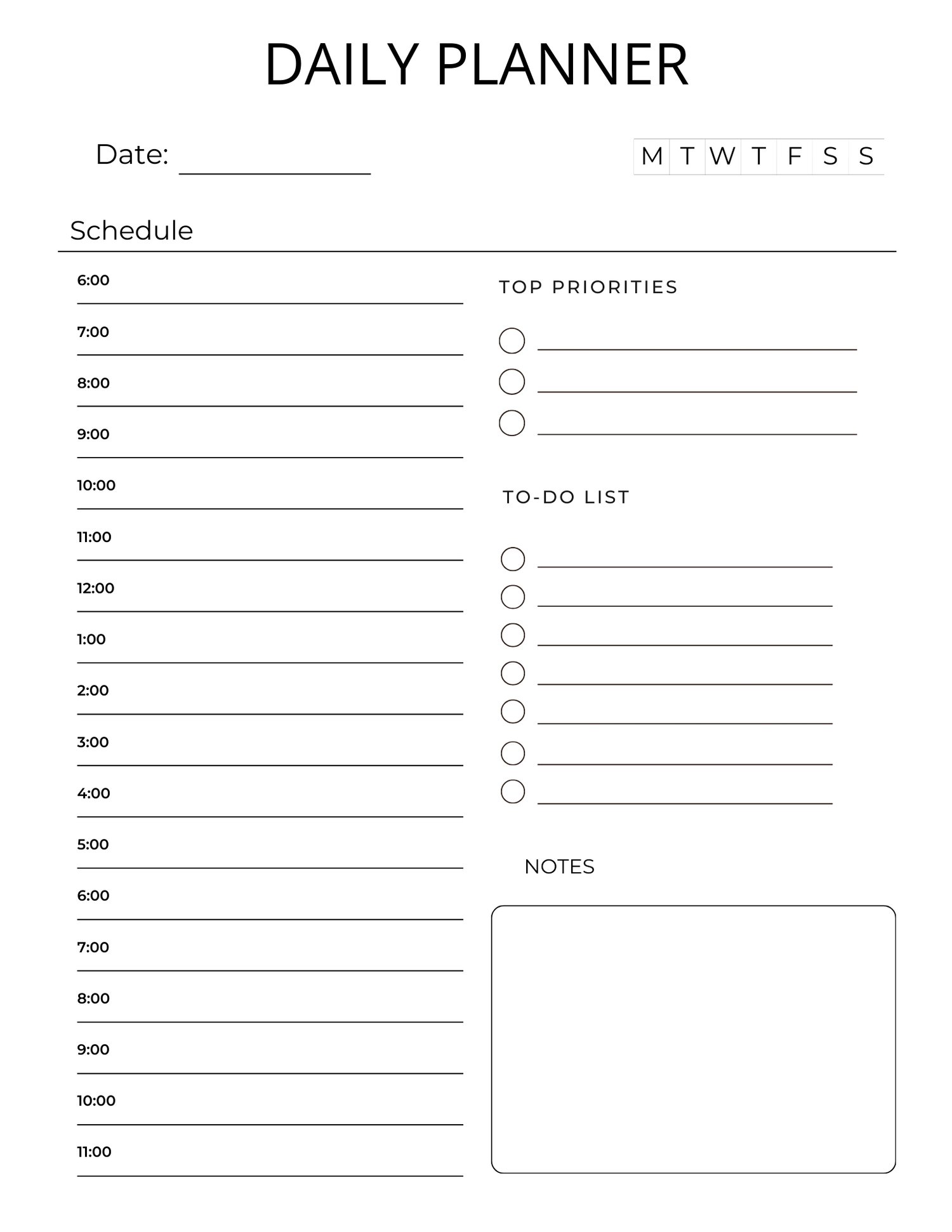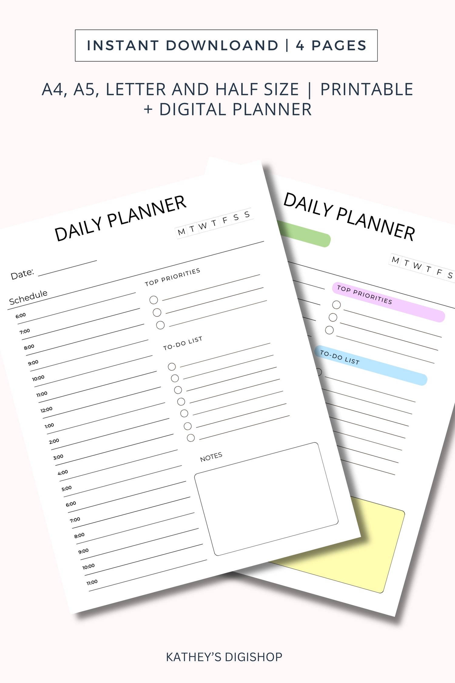 - The Daily Planner comes in 4 sizes: Letter Size, A4, A5, and Half