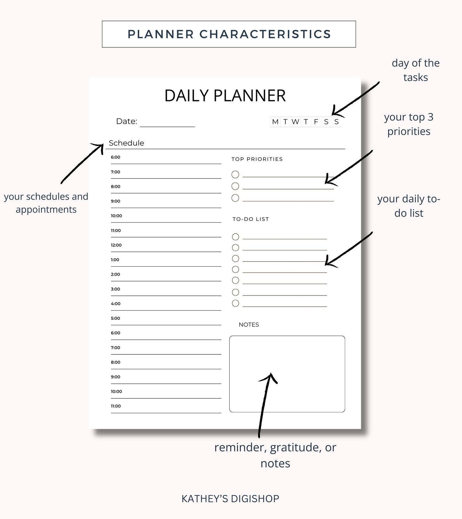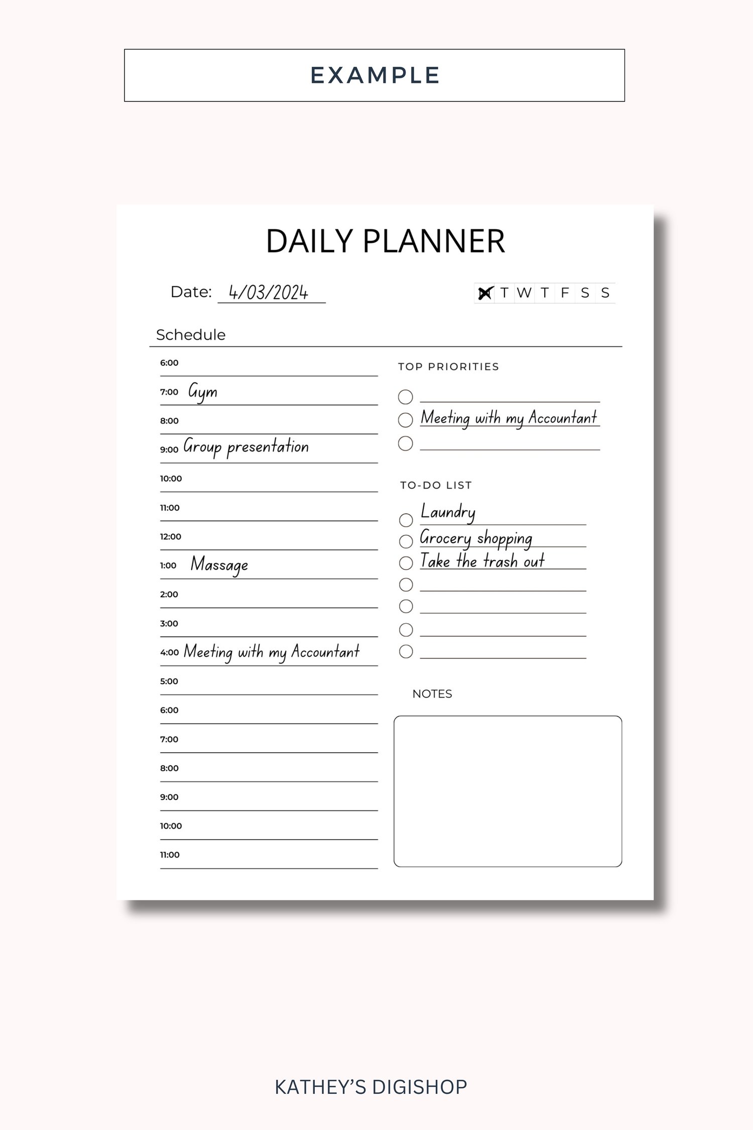 This is a Daily Planner to organize your days with elegance and efficiency. You can add your priorities, to-do list, and add schedules.