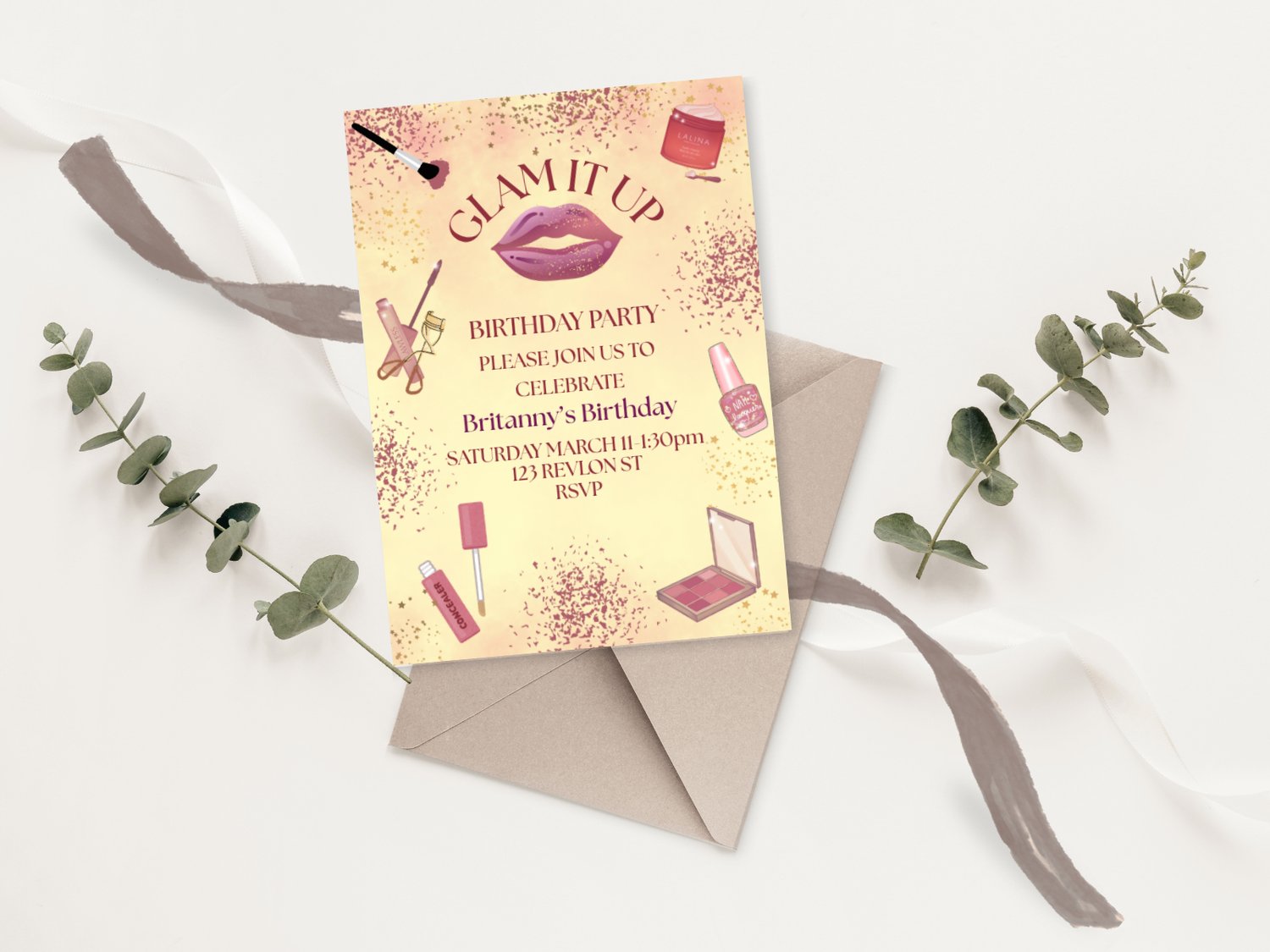 Editable Glam It Up Birthday Invitation for Girls – 5x7 Canva Template