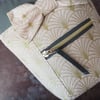 Something to decorate the zipper pull of the front pocket. I love a piece of leather or vegan leather but ribbon or baker’s twine looks awesome too. If you are going full on evening and you have some basic jewellery supplies, think about making the zipper pull decorations from beads.