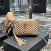 Borsa caratterizzata da una tracolla regolabile, removibile, iniziali YSL intrecciate in metallo al centro impunture trapuntate.