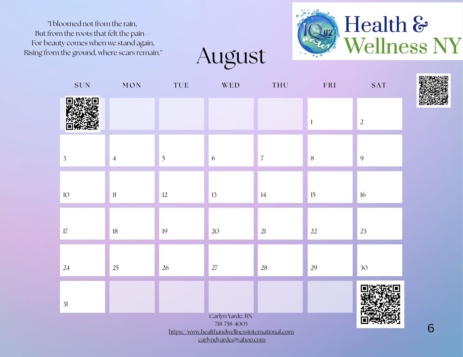 Glab your whimsical calendar for June 2025-December 2026, with inspirational poems for each month, as well as a reminder to take care of your health with one of the most dedicated nurses on the planet...Ms. Carlyn Yarde. Using the latest technology, Ms. Yarde can assess your health needs and set up a plan to better health and rejuvenation.