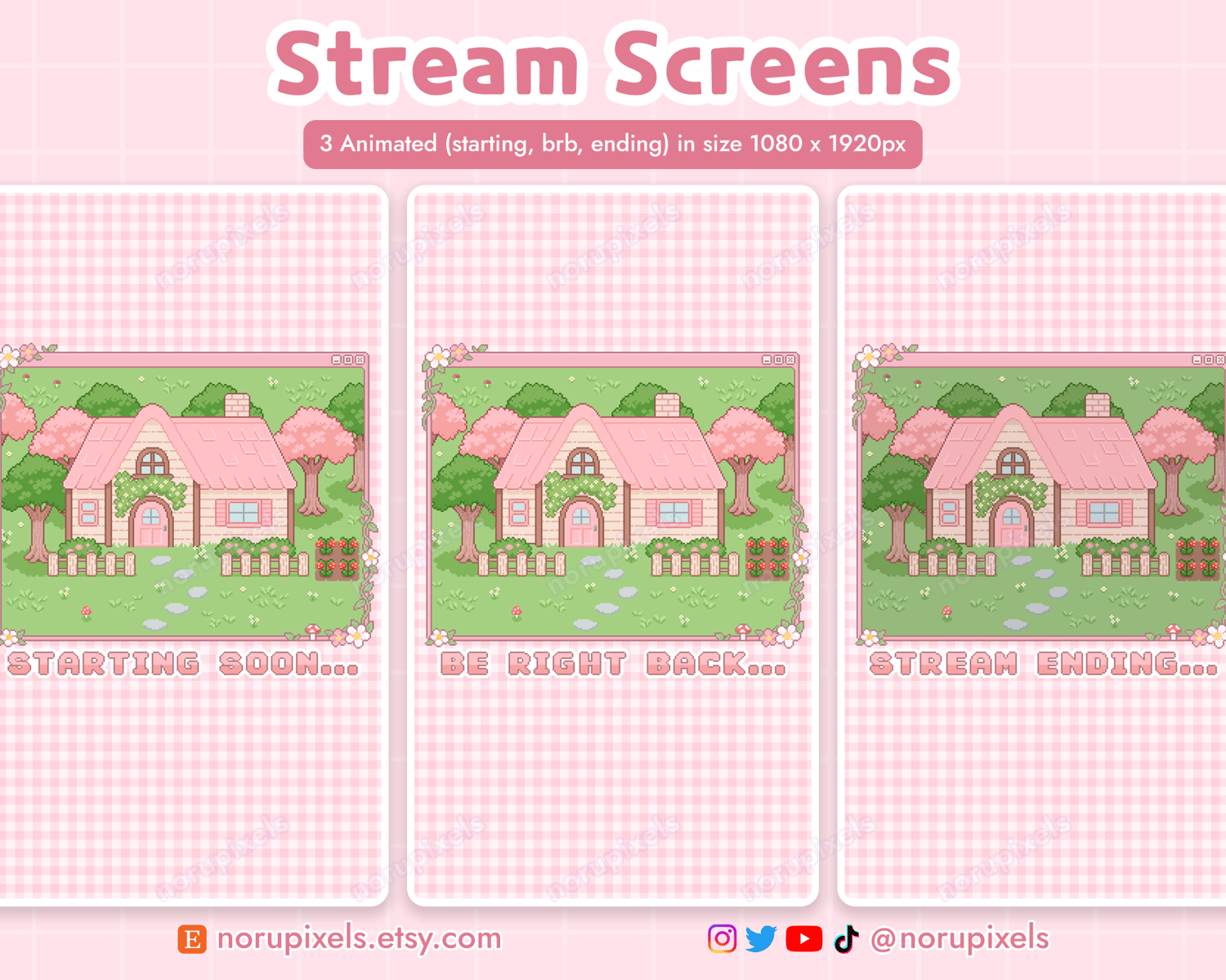 - 3 animated stream screens (starting, be right back, ending), each in .MP4 format (size 1080 x 1920px)