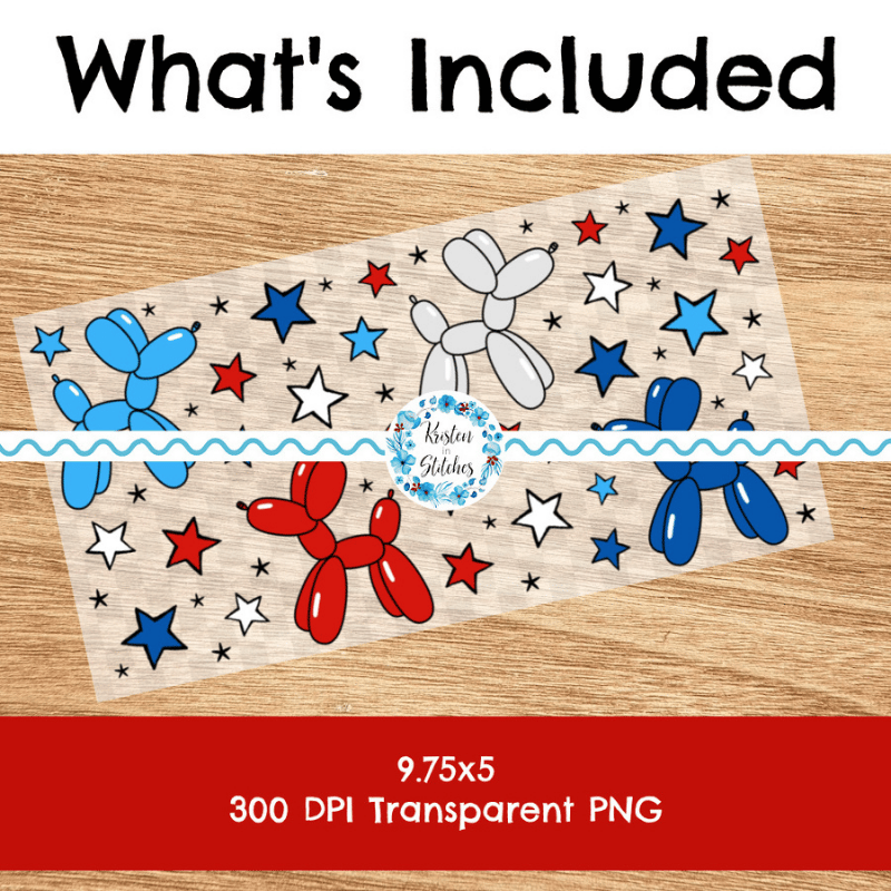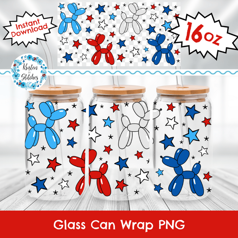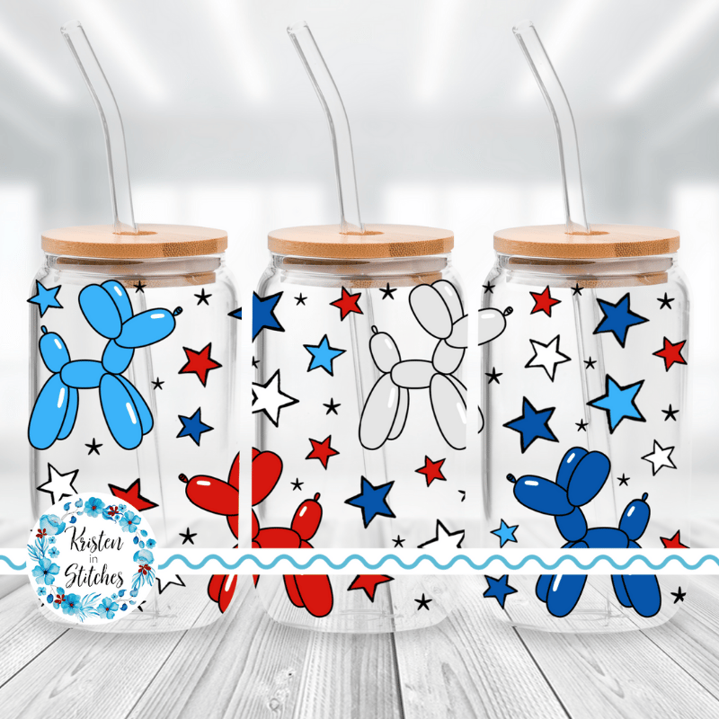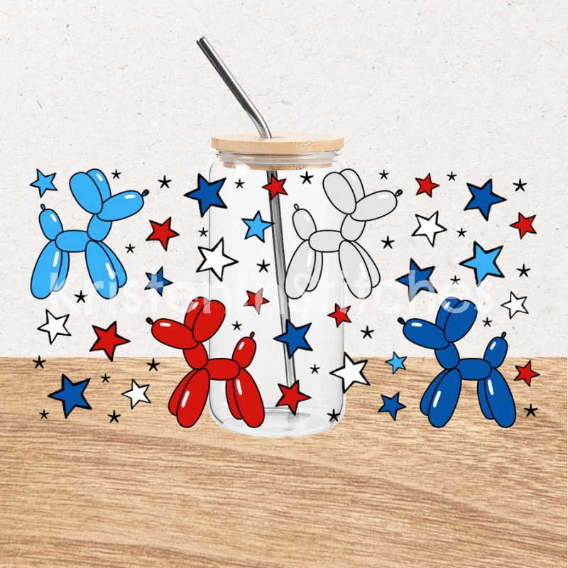 Patriotic Balloon Dog Glass Can Wrap Transparent PNG, Red White and Blue Stars