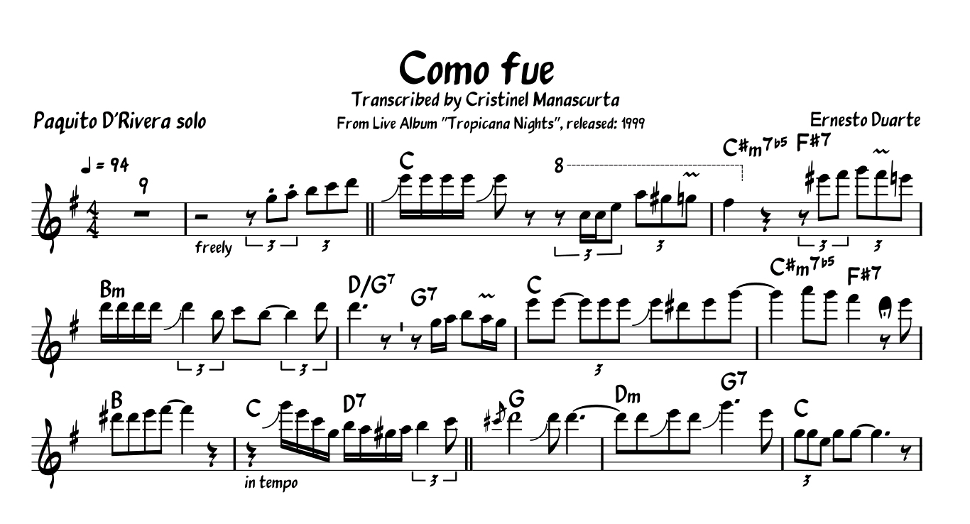 Paquito D'Rivera - Como Fue, tenor sax (transcription)