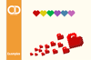 Each colour has a set of 6 hearts with different styling from flat, to a 3d effect and highlight.