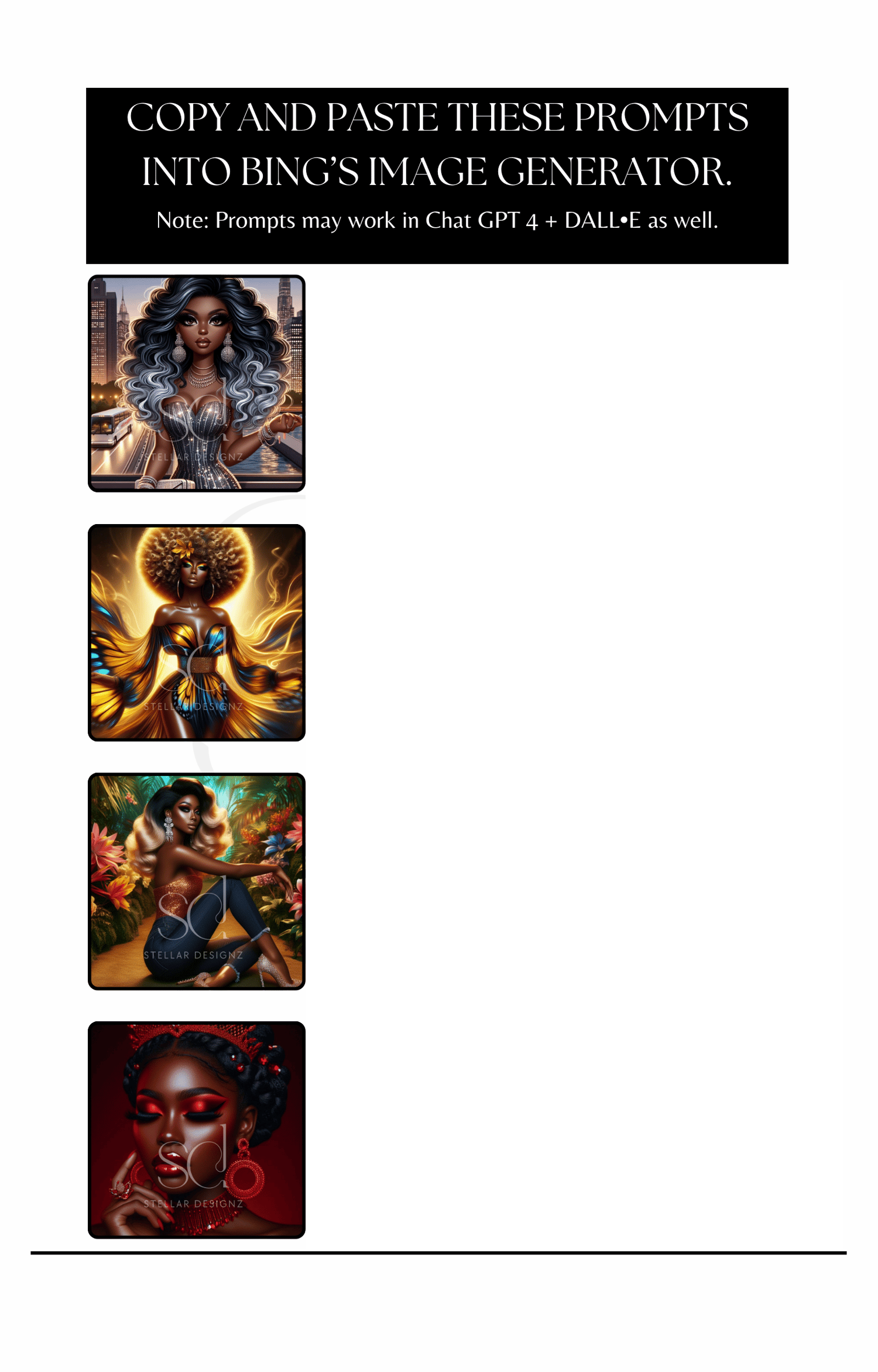 Welcome to our new mixed image beauty prompt book volume 2, where creativity knows no bounds! Inside these pages, you'll find a treasure trove of inspiration with 24 exciting prompts waiting to spark your imagination. But that's not all – we've sprinkled in 2 bonus prompt to fuel your artistic fire even further.
