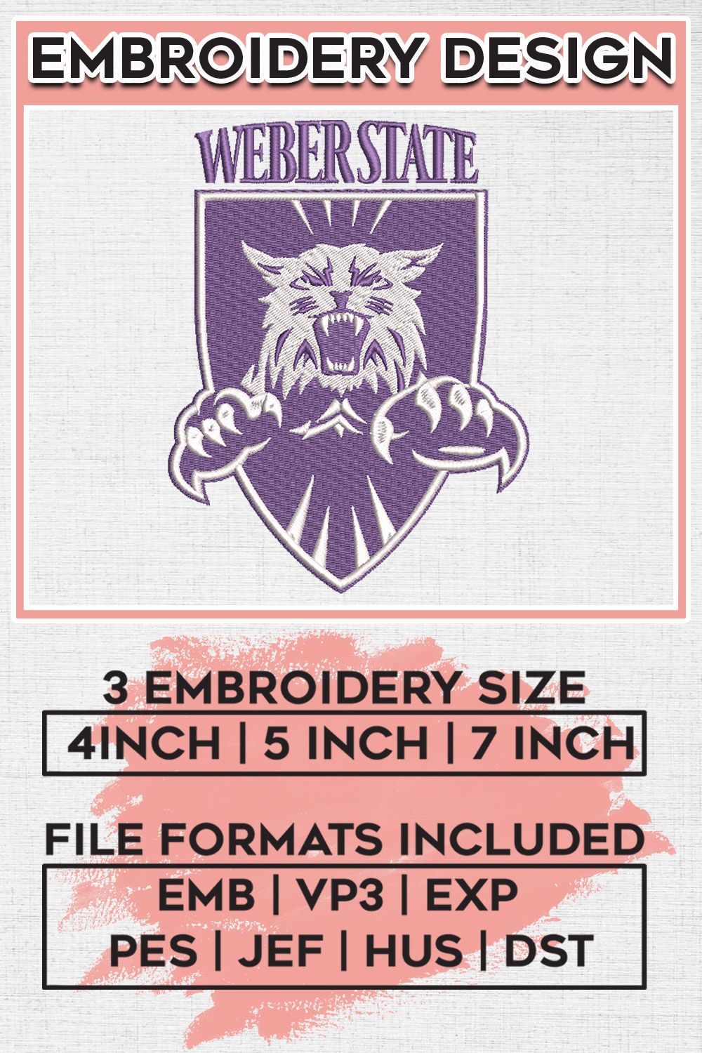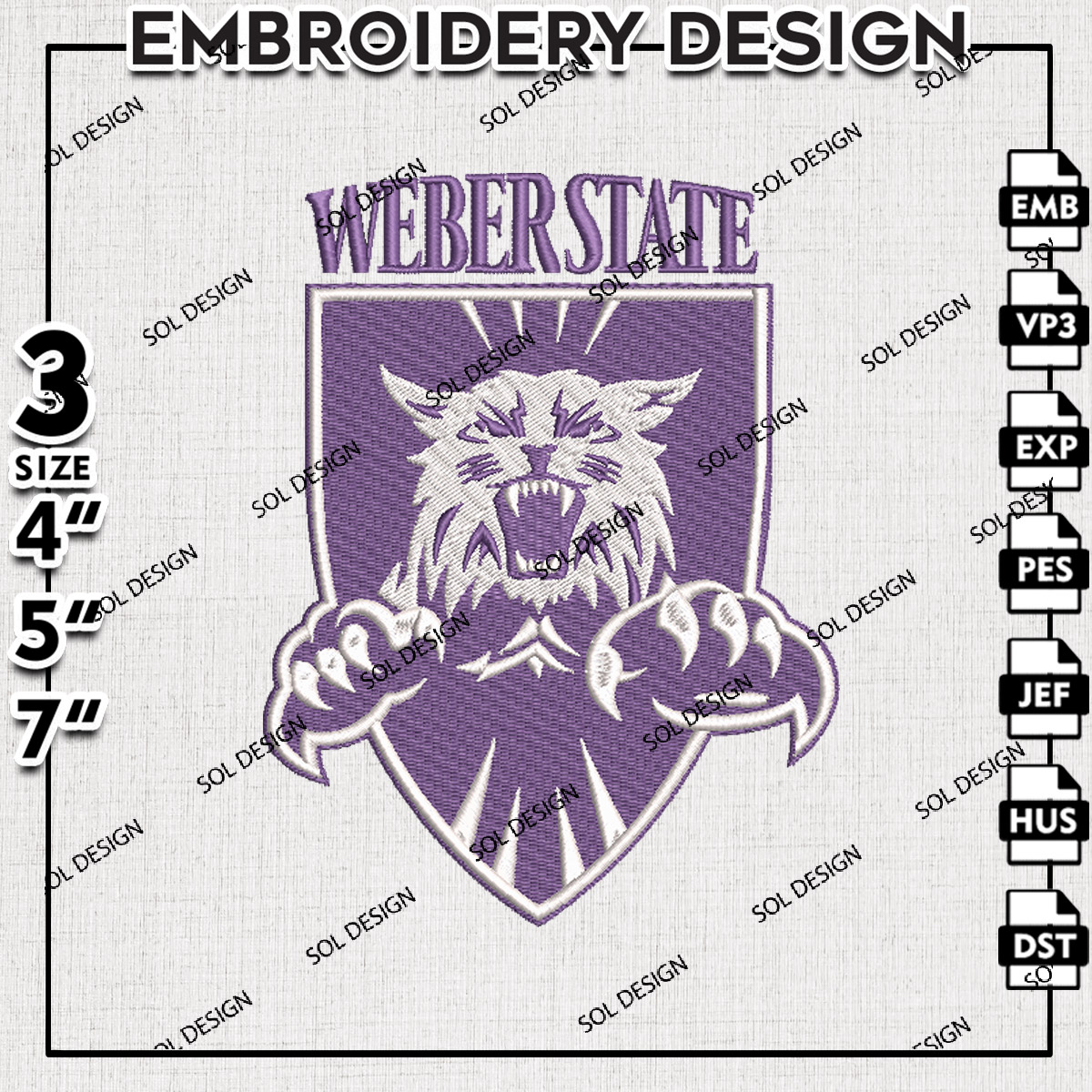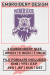 Weber State NCAA Football Team Logo Embroidery Files, NCAA Weber State Wildcats Team Embroidery, NCAA College Football Teams, Weber State Team Emroidery, 3 sizes, Machine embroidery designs, Digital Download
