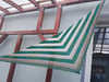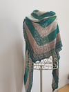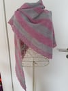 Garters and Stockings is a basic triangular shawl, knit from the neck down, in 2 contrasting colours and, if wished, in contrasting yarns.