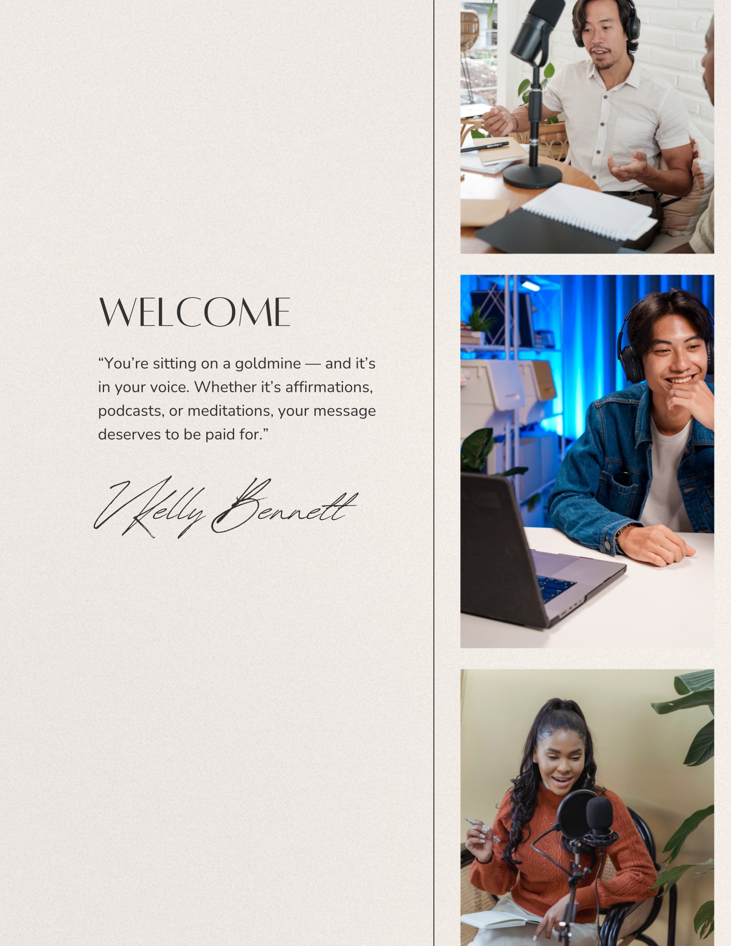 Voice-based content is one of the fastest-growing digital product formats â and the easiest to create with minimal tech. This starter kit removes the guesswork, so you can focus on delivering value and earning on repeat.