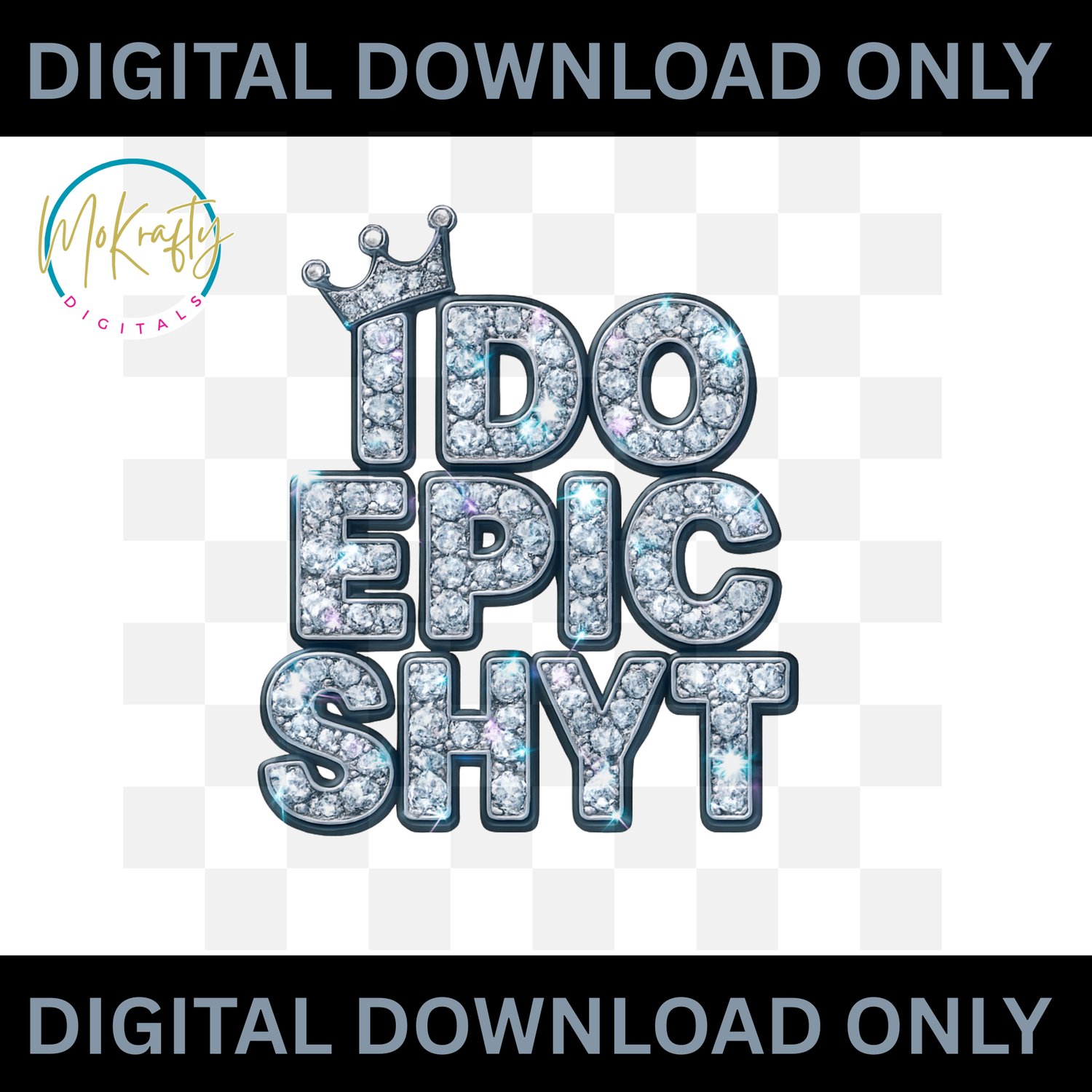 This “I Do Epic Shyt” PNG features a bold, luxury diamond-style font with a crown detail—perfect for statement apparel and custom merch. Ideal for shirts, hoodies, tumblers, and more.